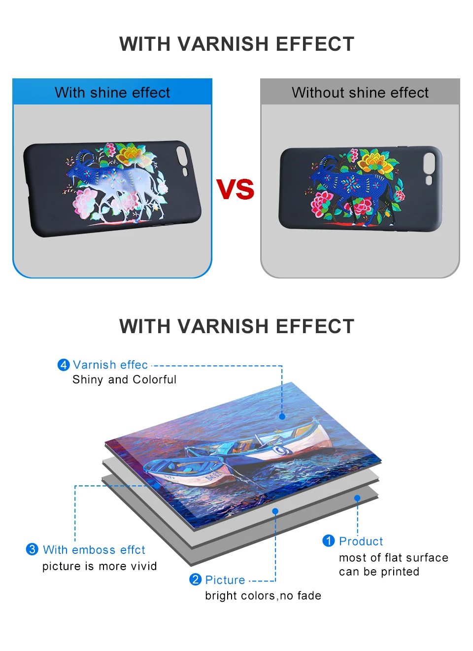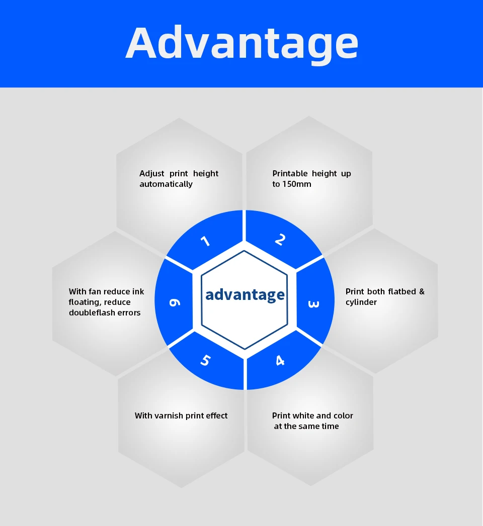 Преимущество:1. Для продуктов с неправильной формой поверхности, которая не может печатать непосредственно УФ-принтером