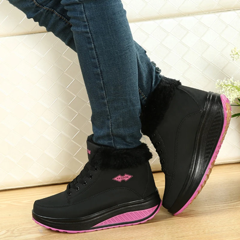 Теплые короткие плюшевые ботинки Rimocy на платформе для снежной погоды, женские зимние Нескользящие Ботильоны на танкетке, женские ботинки на шнуровке с хлопковой подкладкой, криперы