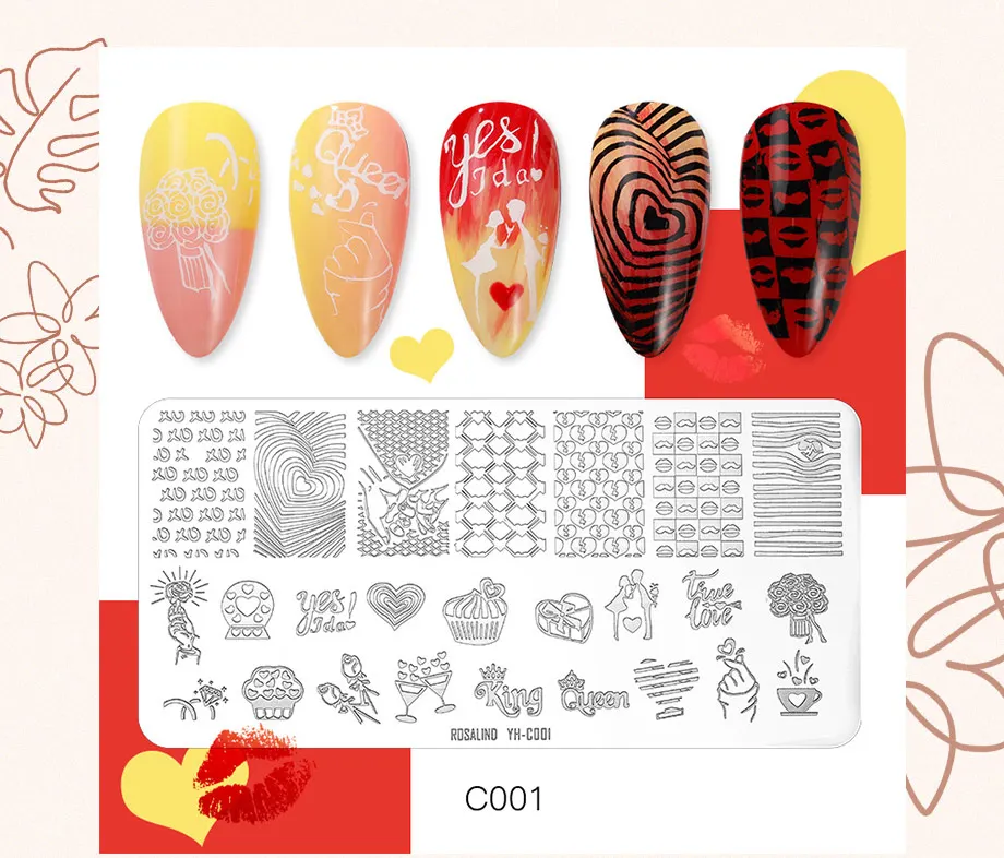 ROSALIND Nail Печать в виде цветка оставьте шаблон для штамповки «сделай сам», трафарет для ногтей с изображением цветочной печати, инструменты из нержавеющей стали