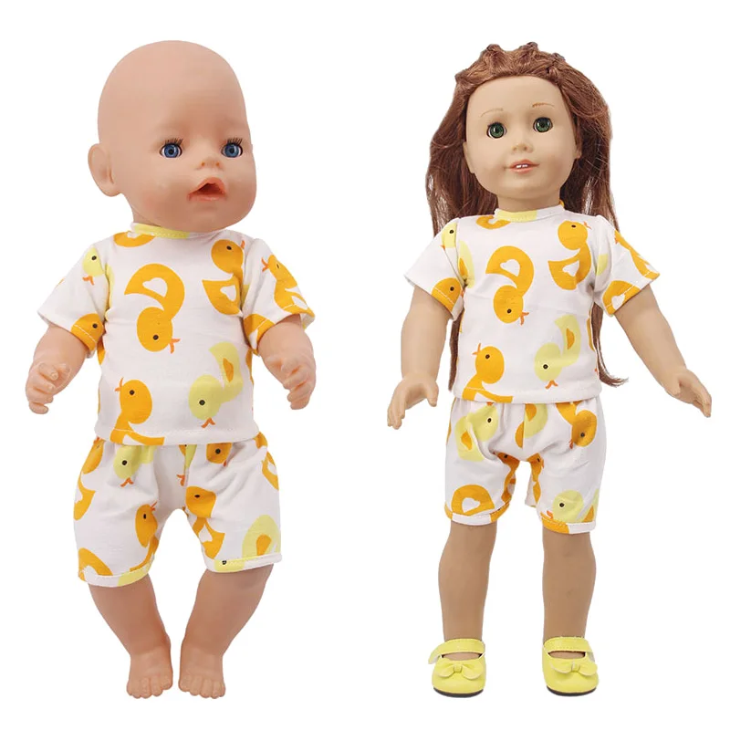 Летний комплект, Повседневная Пижама на утином пуху, костюм для 18-дюймовых американских кукол и 43 см новорожденных, аксессуары для одежды