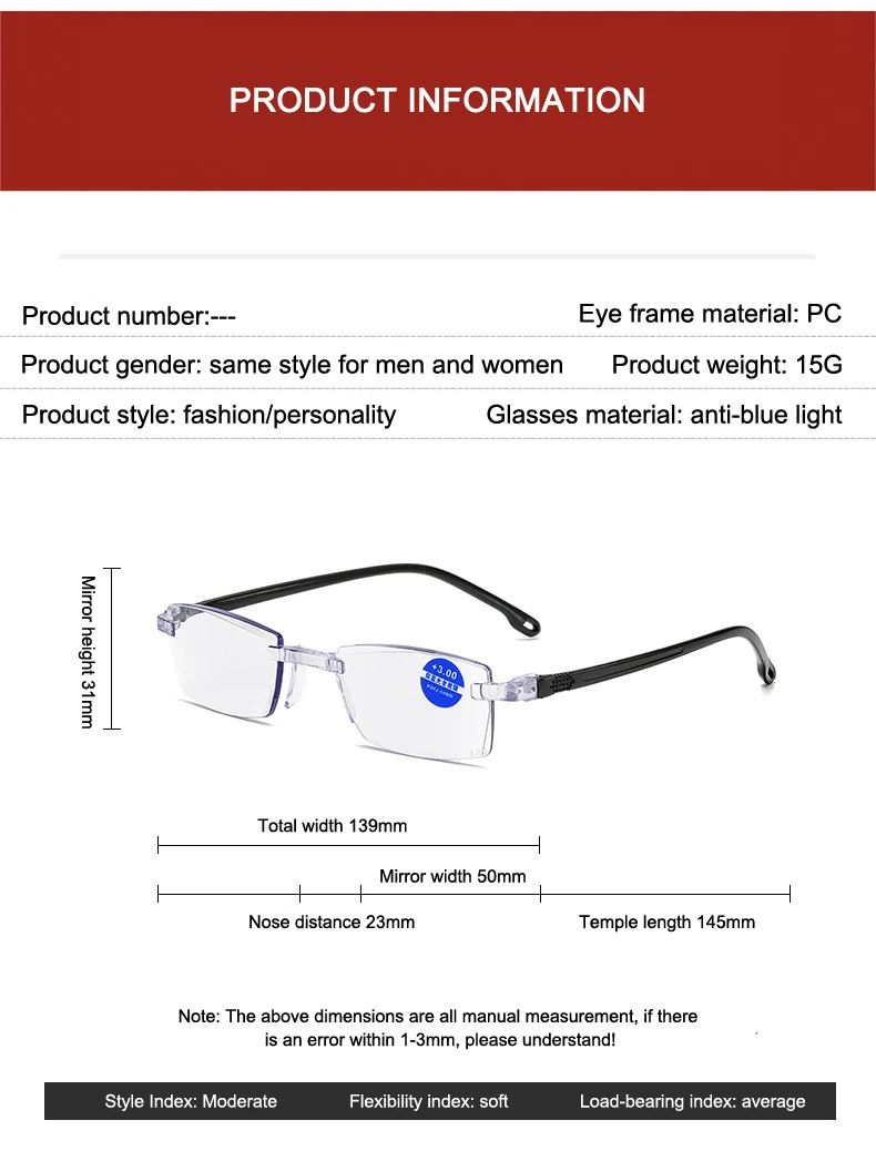 Очки для чтения без оправы для мужчин и женщин, бифокальные аксессу...