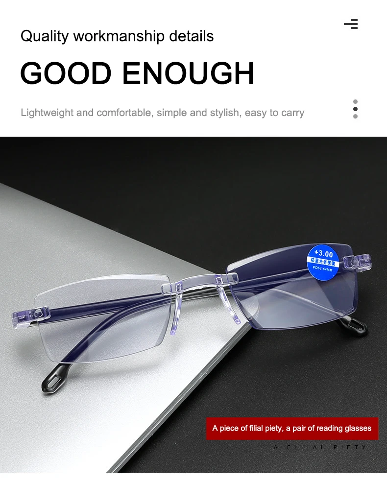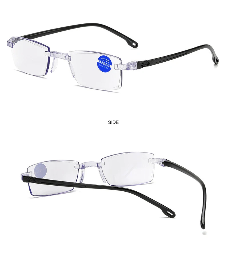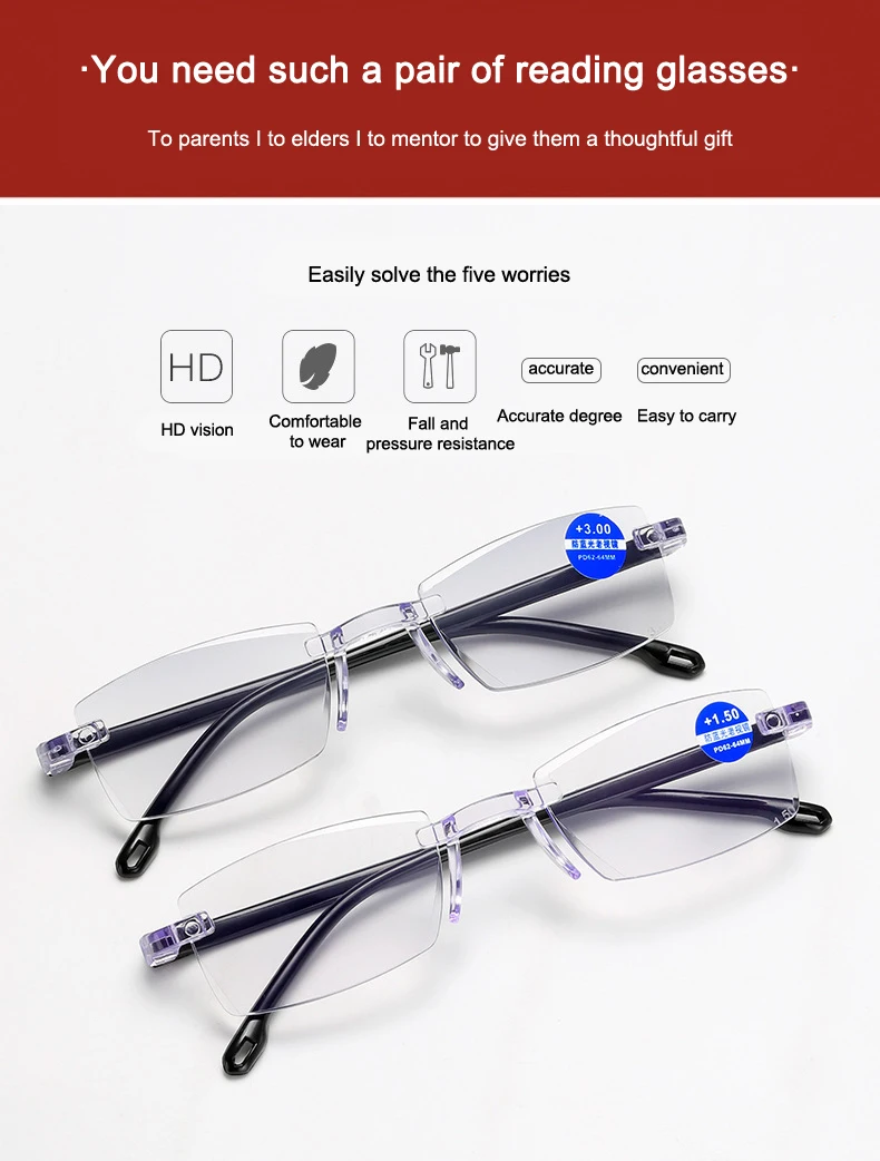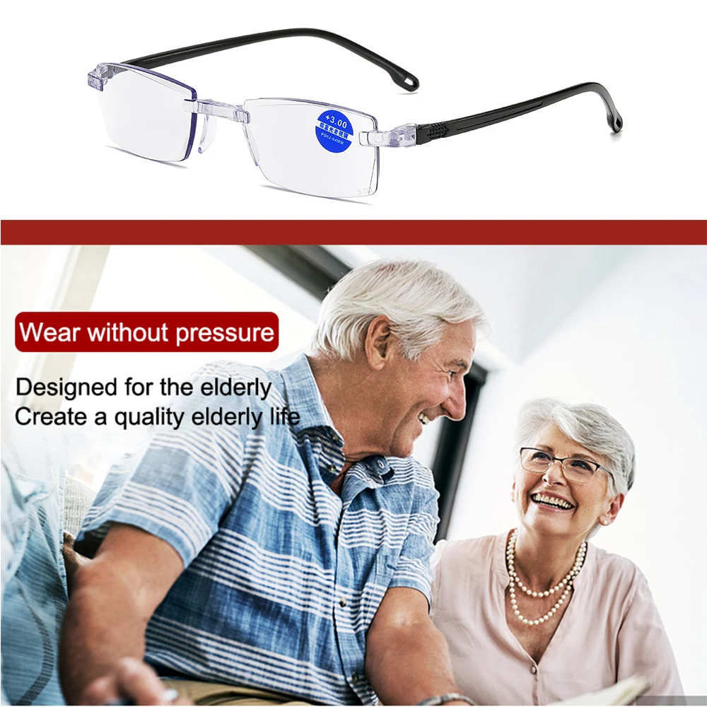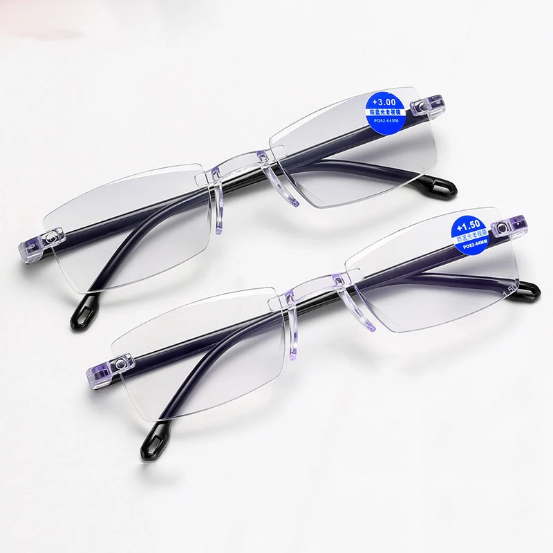 Очки для чтения без оправы для мужчин и женщин, модные аксессуары для чтения с алмазной кромкой и блокировкой синего света