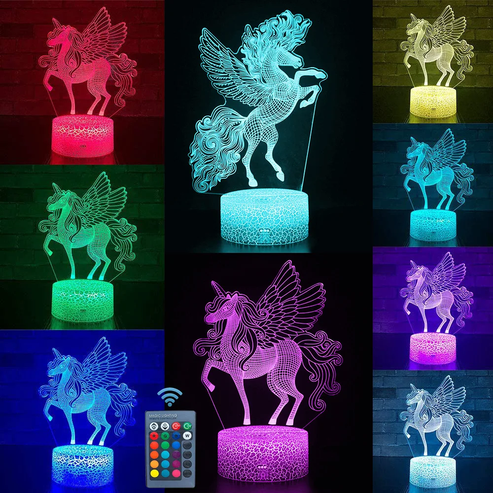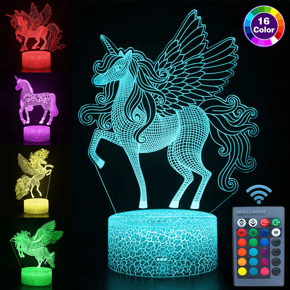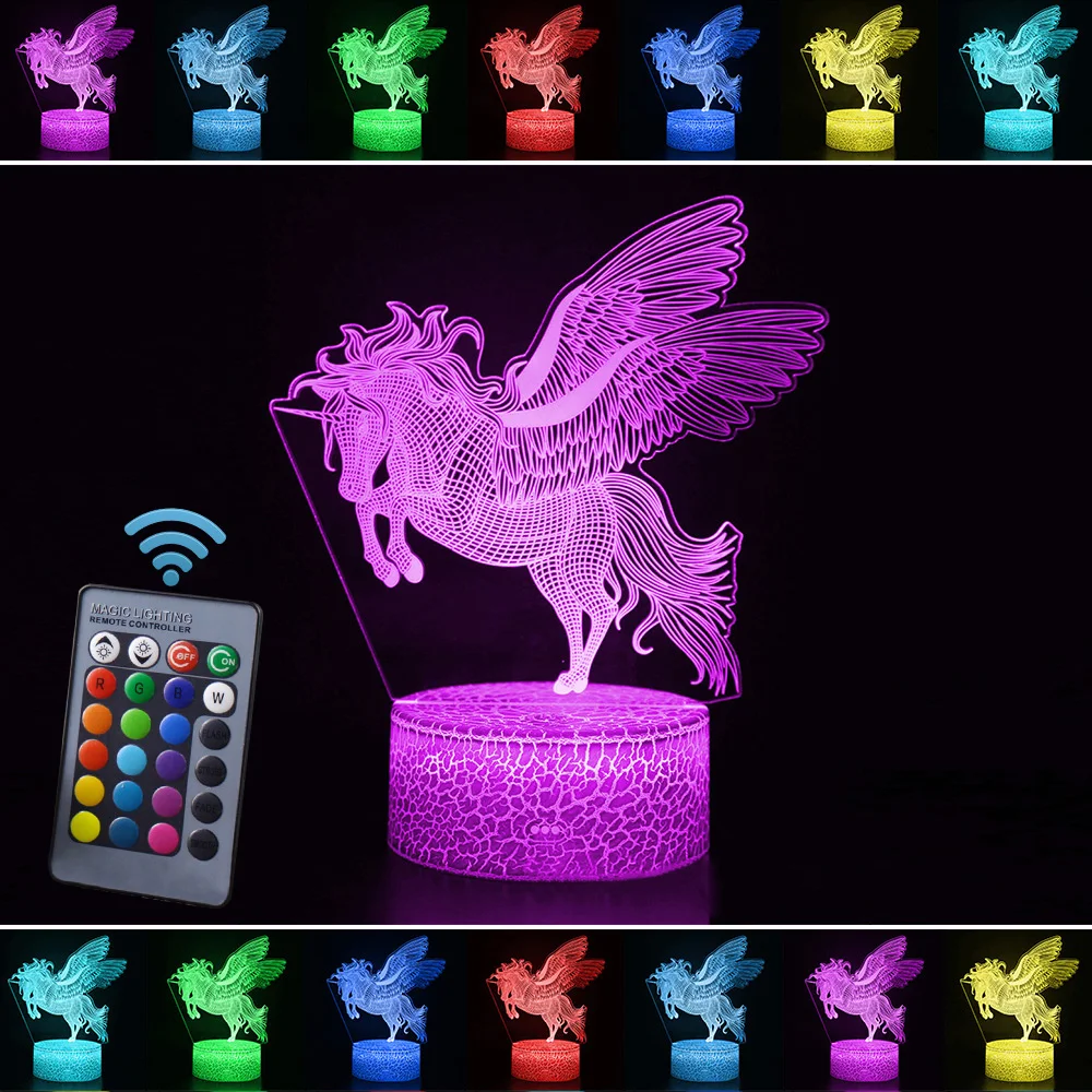 Пульт дистанционного и сенсорного управления 3D светодиодный Ночной светильник, модная серия единорогов, 16 цветов, светодиодная настольная лампа для детей, рождественский подарок, украшение для дома