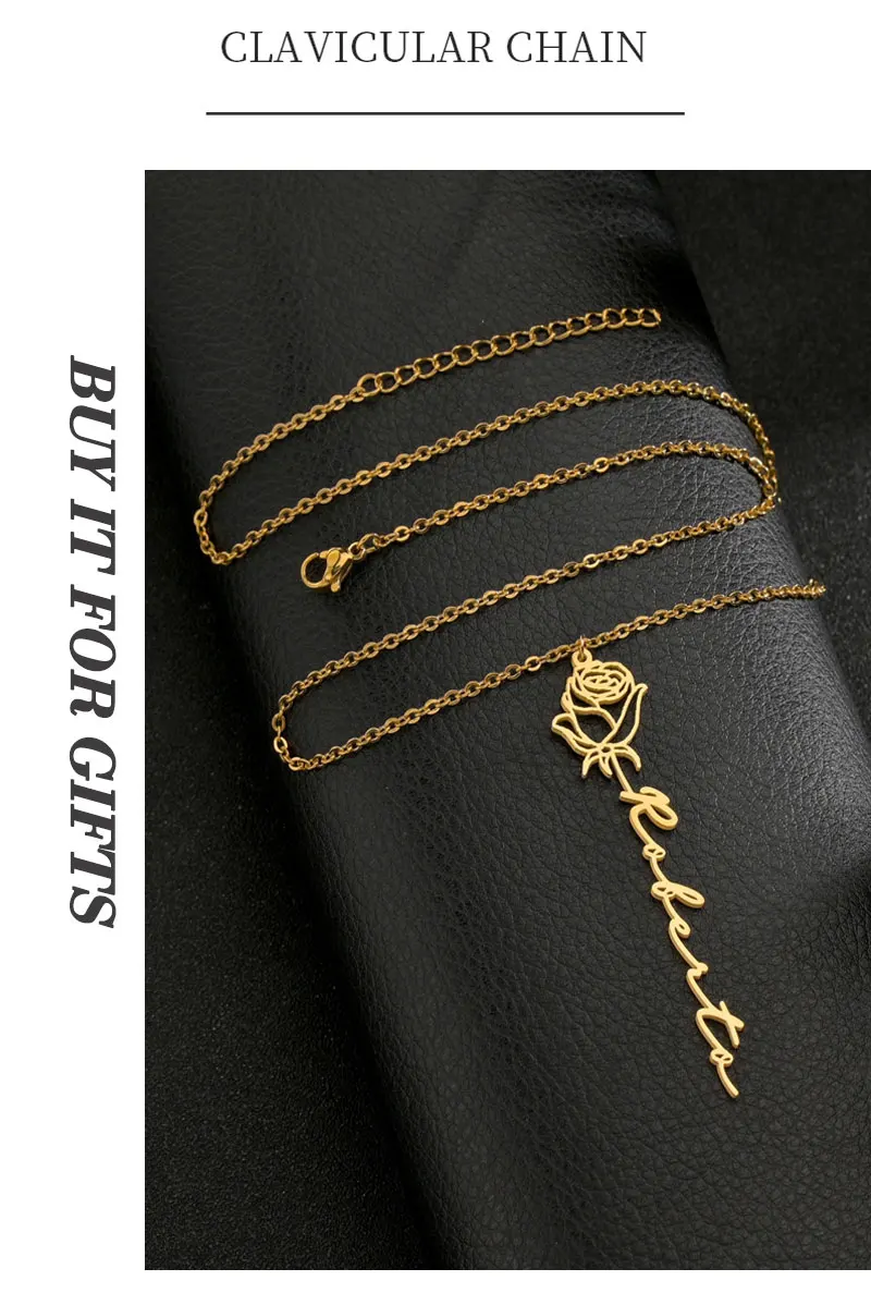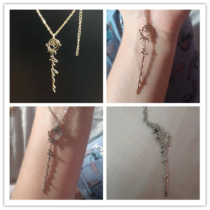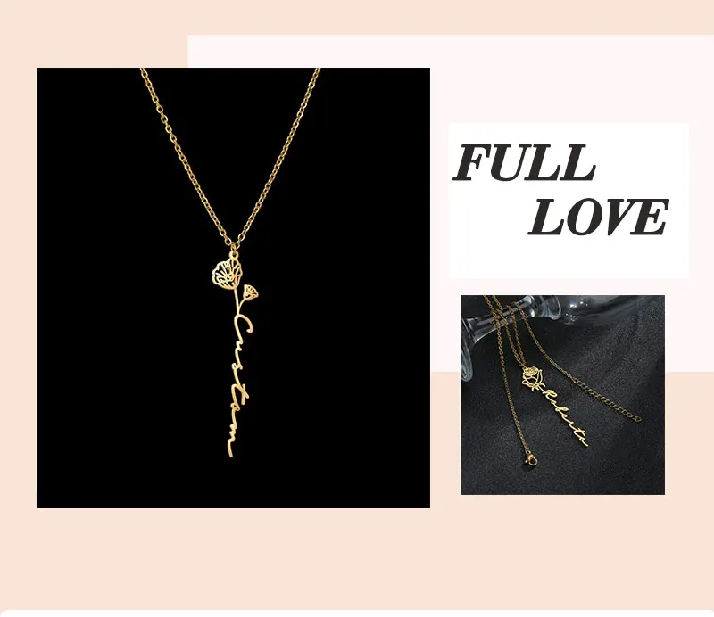 Ожерелье с именем цветка на заказ, чокер с именной табличкой из нержавеющей стали с индивидуальными буквами розы, кулон для любимой женщины, подарочное ювелирное изделие