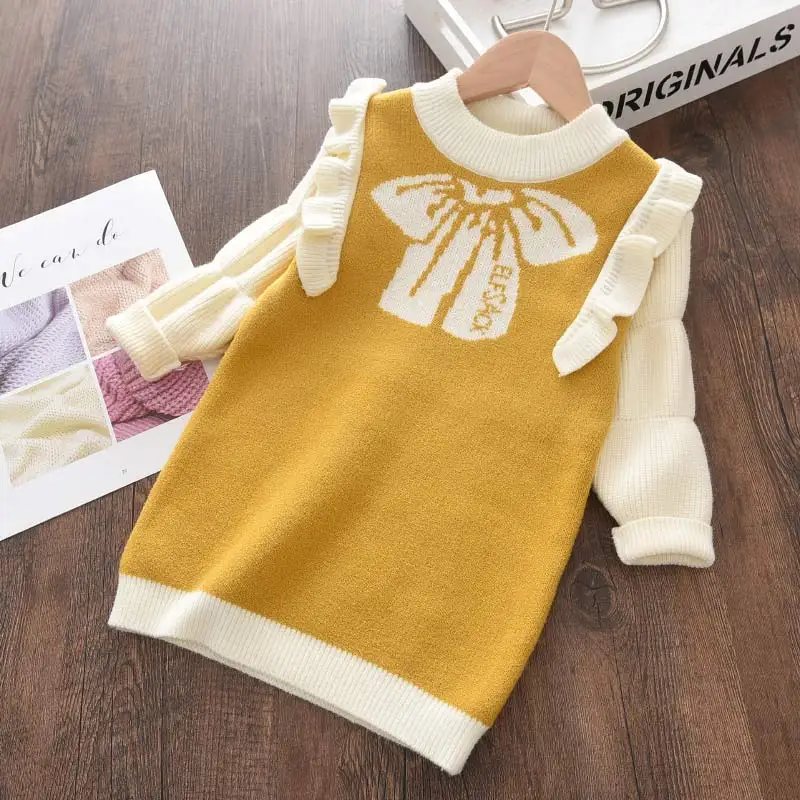 MelarioНовинка; Детский свитер для девочек; Вязаное платье; Милое д...