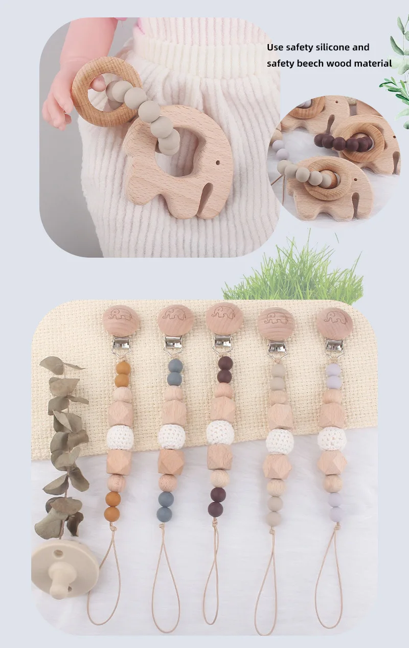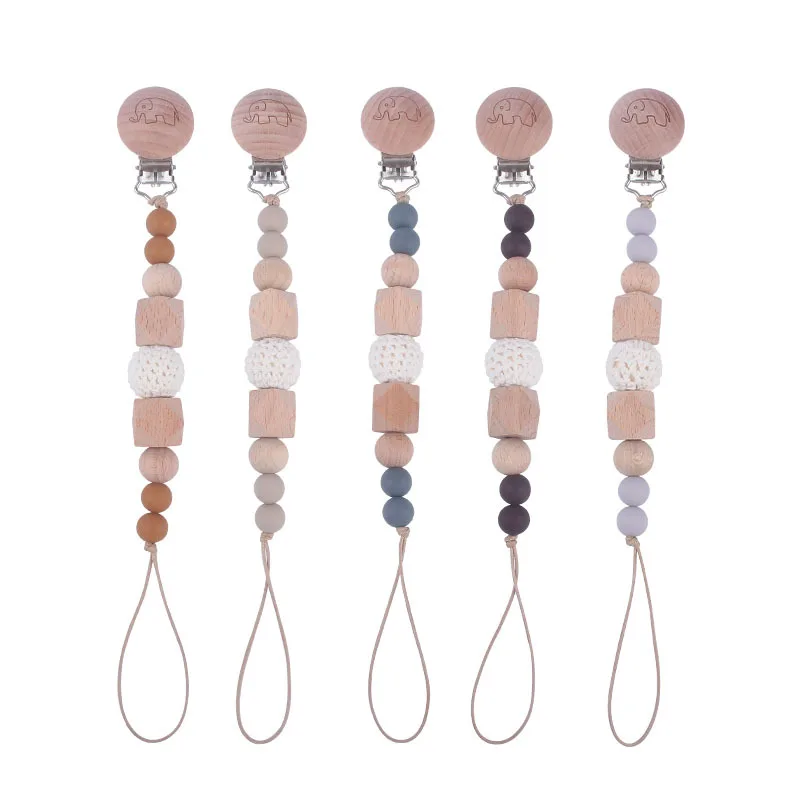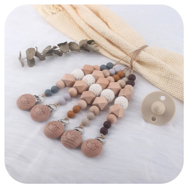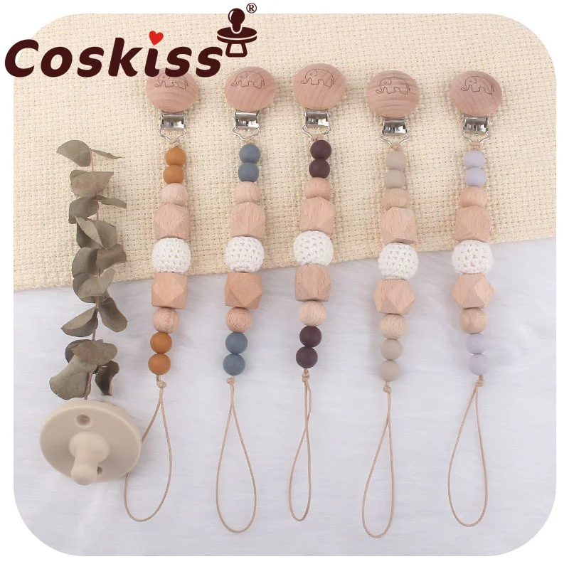 Coskiss, 1 шт., детская цепочка для прорезывания соски, буковая деревянная печать, зажим для слонов, Геометрическая цепочка для соски, крошечная удочка, игрушки, подарок