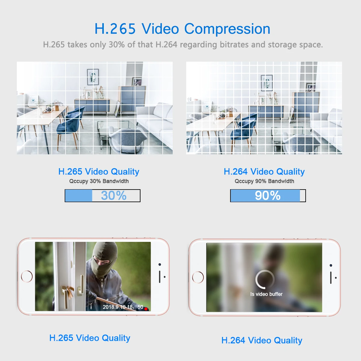 H.265 занимает только 30% от этого H.264 для битрейта и места для хранения