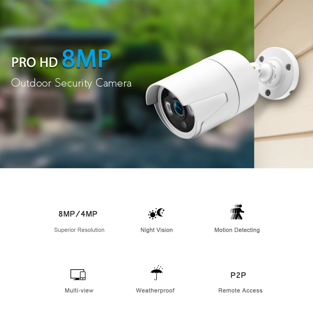 BESDER 8MP 4KIP камера видеонаблюдения POE H.265 наружная водонепроницаемая IP66 камера видеонаблюдения P2P видео дома для POE NVR H.265 8MP