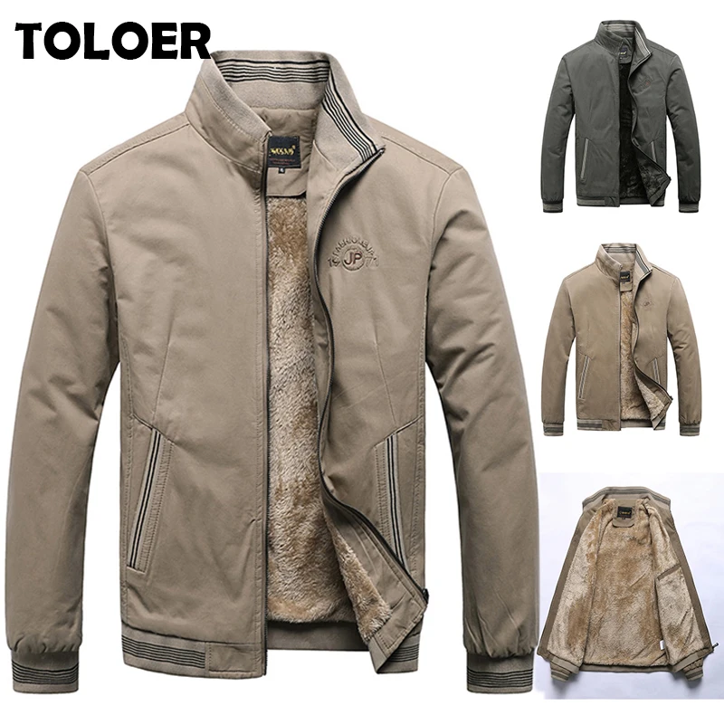 Мужская осенняя куртка с воротником-стойкой, на меховой подкладке