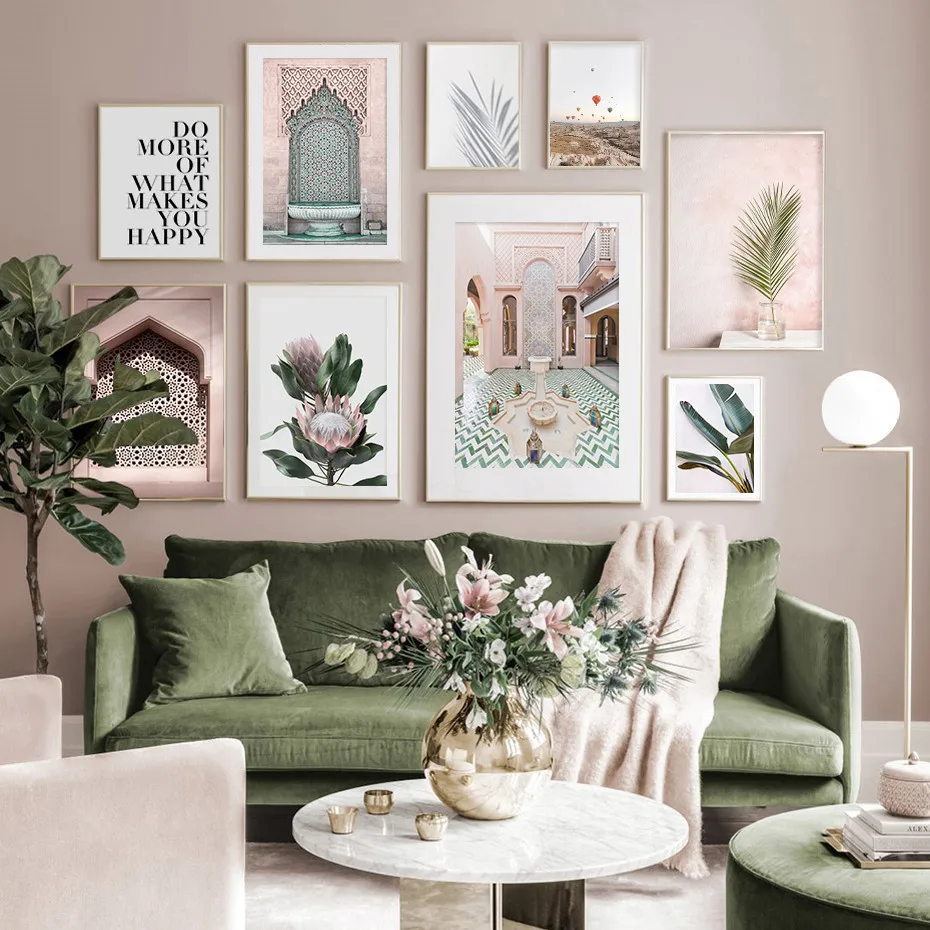 Мозаика из марокканских цветов фонтана, постер с зелеными растениями, Картина на холсте, художественная живопись, картина для гостиной, украшение для дома