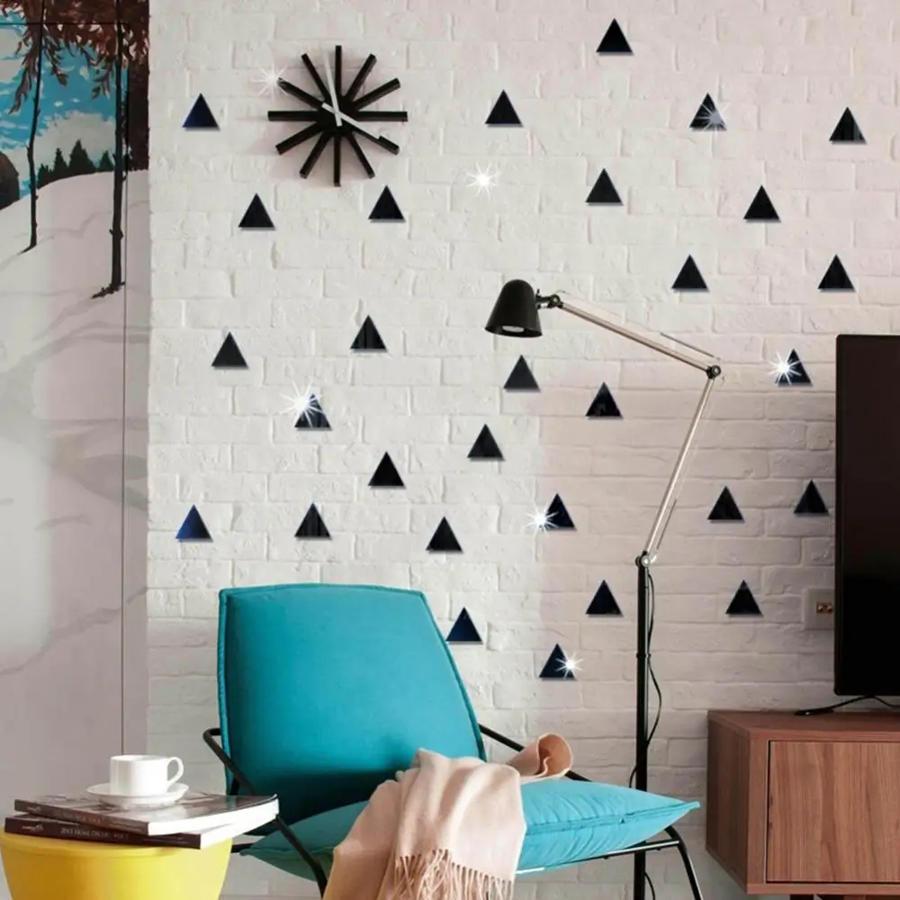 100 шт. Акриловые 3D треугольные мозаичные зеркальные эффекты настенные стикеры домашняя комната DIY акриловые стикеры s спальня домашний декор гостиной