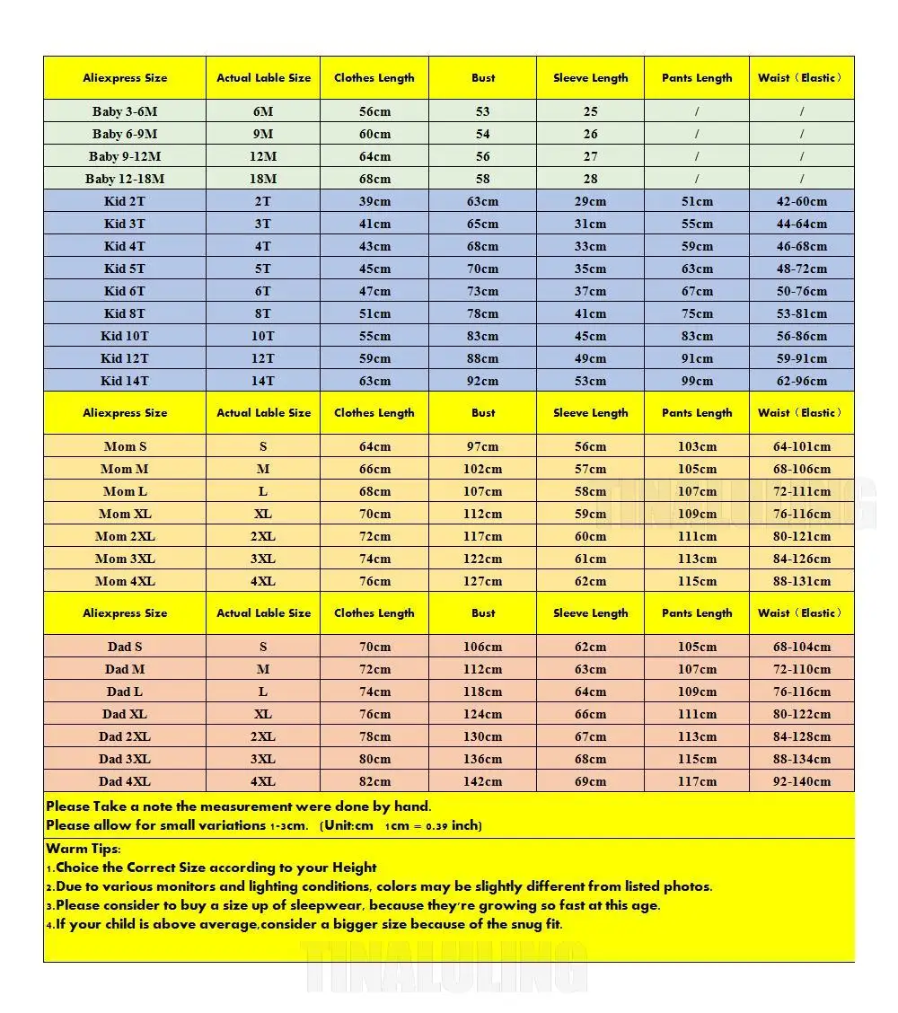 Размер Aliexpress для мамы 3XL, длина одежды: 74 см, обхват груди: 122 см, длина рукава: 61 см, длина брюк: 113 см, обхват талии: 84-126 см