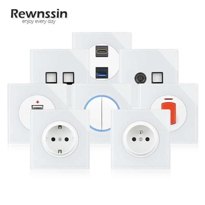 Настенная фоторозетка Rewnssin EUFR, круглые светодиодные переключатели, Переключатель А, 2USB-разъема для зарядки, USB-разъем для передачи данных HDMI, розетки для сетевого порта