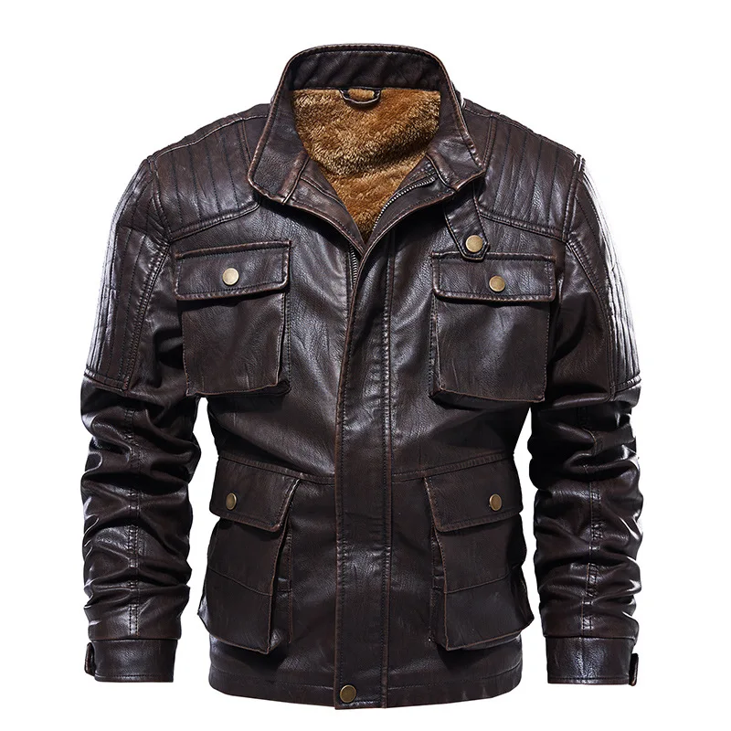Мужская Байкерская ветровка, повседневная мотоциклетная куртка из натуральной кожи, пальто из искусственной кожи с несколькими карманами для осени и зимы, 2022