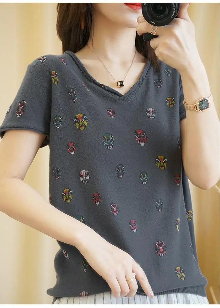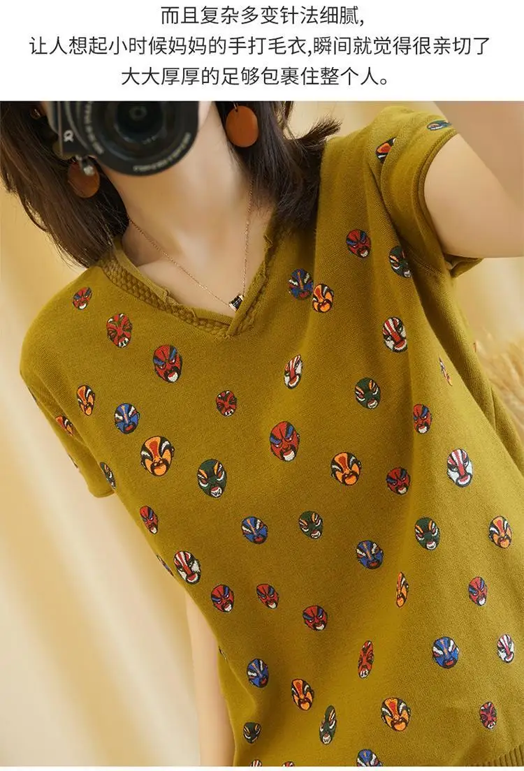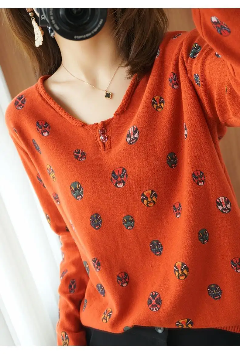 Женский пуловер в китайском стиле, хлопковая Футболка с круглым вырезом и длинным рукавом, осеннее пальто с принтом в ретро стиле, Повседневная Свободная рубашка