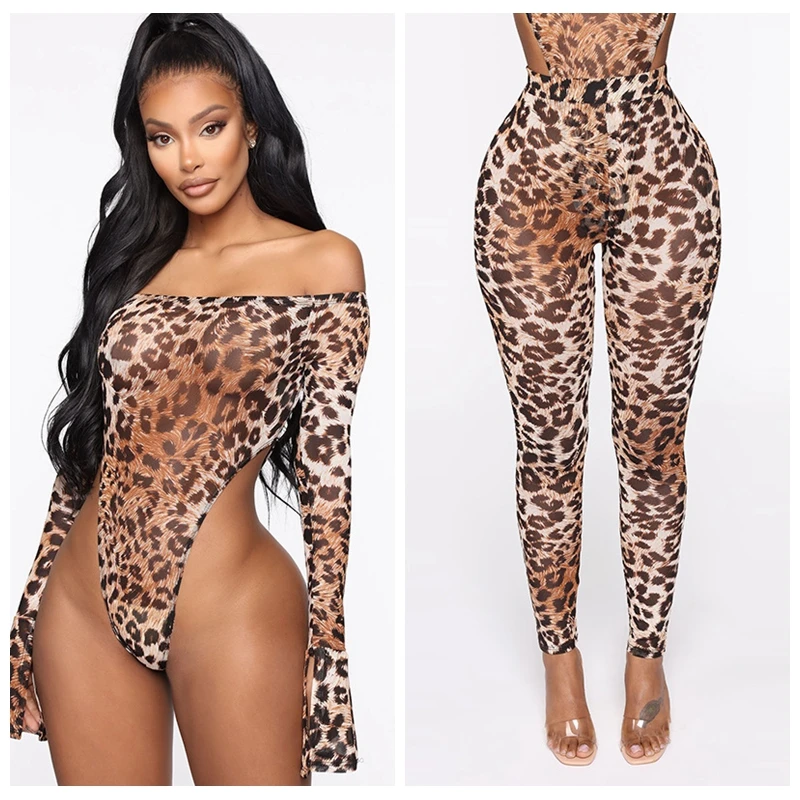 Комплект из 2 предметов с леопардовым принтом, сексуальный женский ...