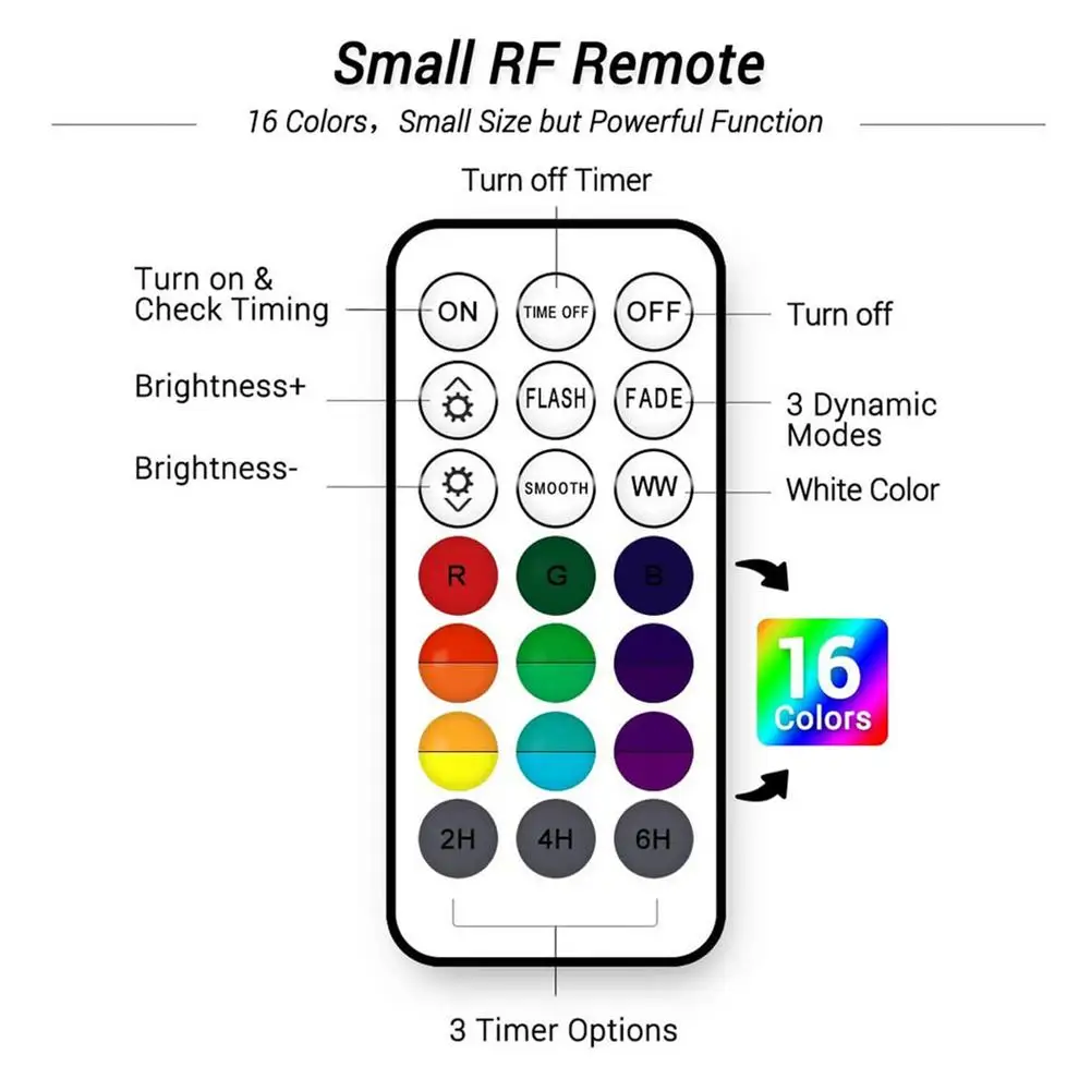 Размер лампы: около диаметр 7 см * высота 3 см/2,76*1,18 дюймовСветильник источник: 13LEDФункция: 16 цветов, 3 динамических режима, регулировка яркости, Функция синхронизацииСветовой поток: 300 лмРежим питания: зарядка через USBВстроенный аккумулятор: 1000 мАч литиевая батареяВремя зарядки: 3 часаВремя работы: 18 часовДлина usb-кабеля: 80 смМатериал корпуса: АБС-пластикВодонепроницаемость: IP68Управление метод: 21-ключ RF дистанционный пульт Управление (встроенный CR2025 аккумулятор)Расстояние дистанционного управления: в пределах 30 мСветильник срок службы от источника энергии: 50000hПрименимые варианты: плавательные бассейны, аквариумы, вазы, аквариумы для рыб, фонтаны, освещение для украшения дома и т. д.Упаковочный лист:Лампа * 1Радиочастотный пульт дистанционного управления * 1Присоска * 3Линия UBS * 1Руководство * 1ИлиЛампа * 2Радиочастотный пульт дистанционного управления * 1Присоска * 5Линия UBS * 1Руководство * 1ИлиЛампа * 4Радиочастотный пульт дистанционного управления * 4Присоска * 10Линия UBS * 2Руководство * 1Примечание:1. Из-за проблем с световыми эффектами и углами съемки, в продукте будут определенные допуски, пожалуйста, поймите.2. Из-за ручного измерения, продукт имеет некоторую погрешность в размере.