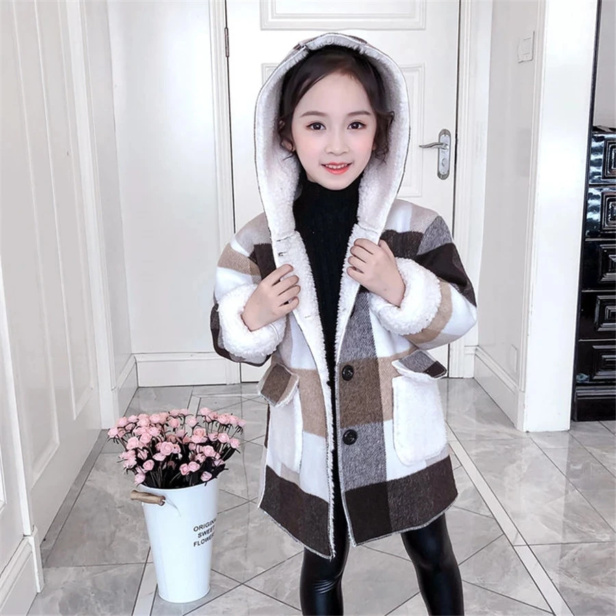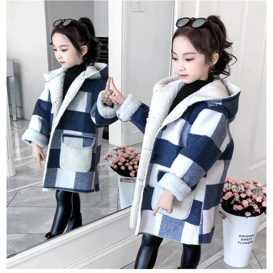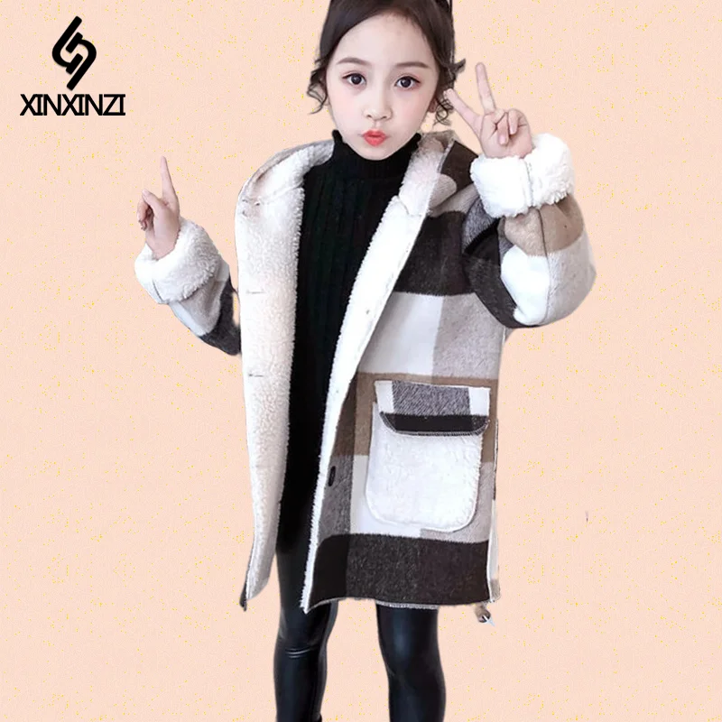 Зимнее шерстяное пальто для девушек, новинка 2021, плотное кашемиро...