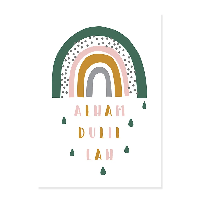 Мультяшные зеленые радужные арабские алфавиты исламские постеры для...