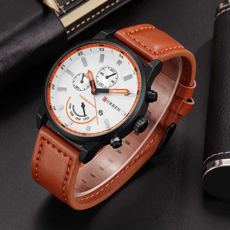 Часы CURREN Мужские наручные кварцевые, роскошные брендовые модные спортивные деловые, в стиле милитари, с ремешком из натуральной кожи