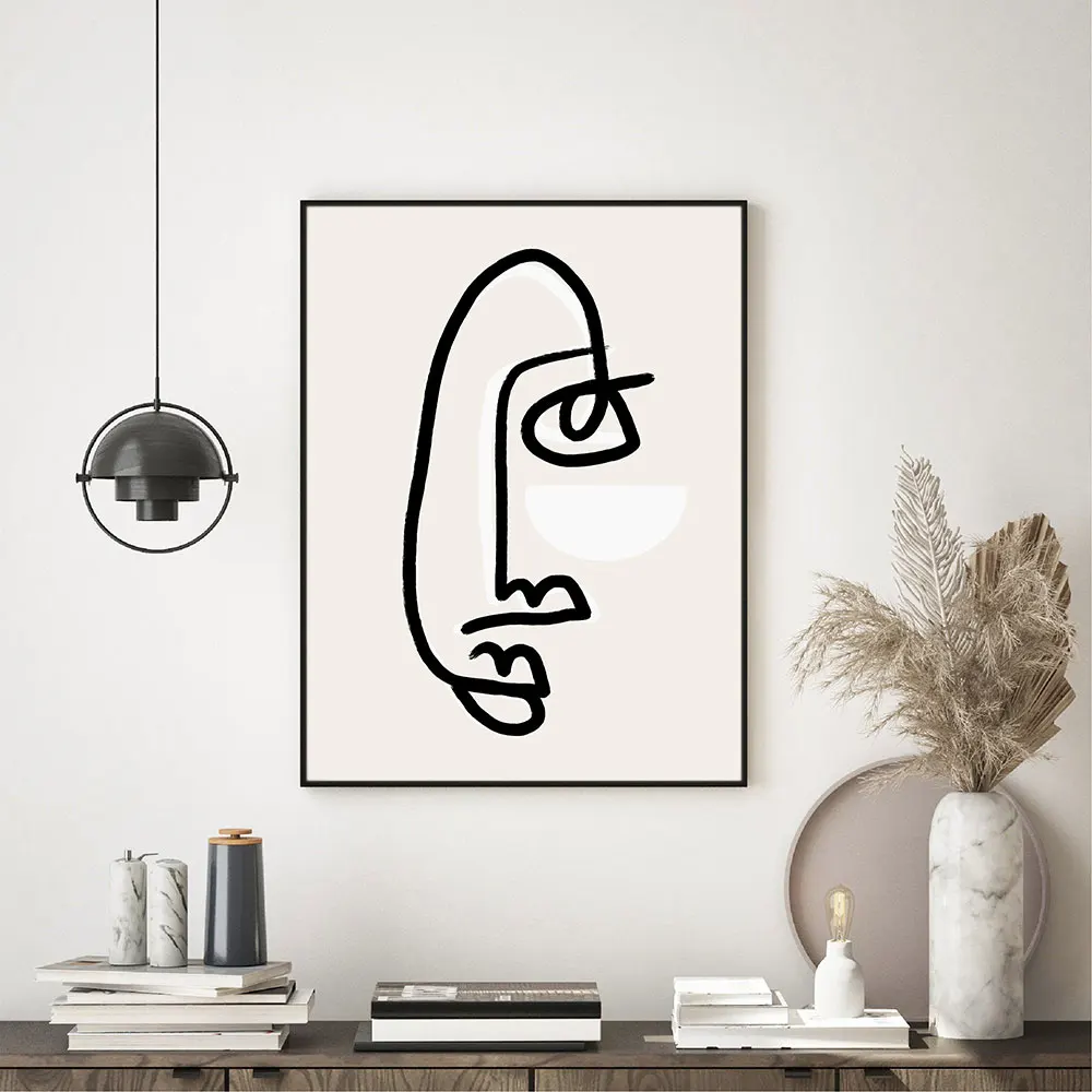 Абстрактный плакат, минималистичный холст, черные и белые линии, рисование лица человека, Художественная печать, Настенная картина для гостиной, домашний декор