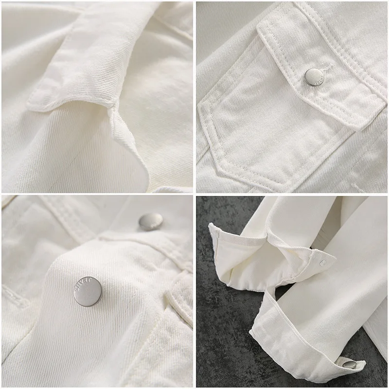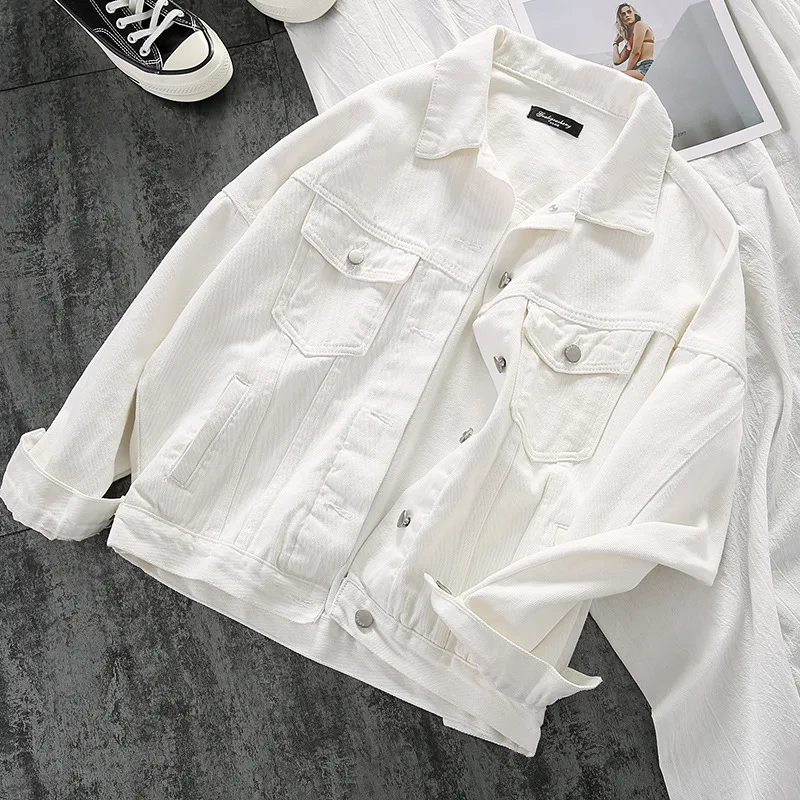 Осенняя белая джинсовая куртка для женщин, Простой повседневный мал...