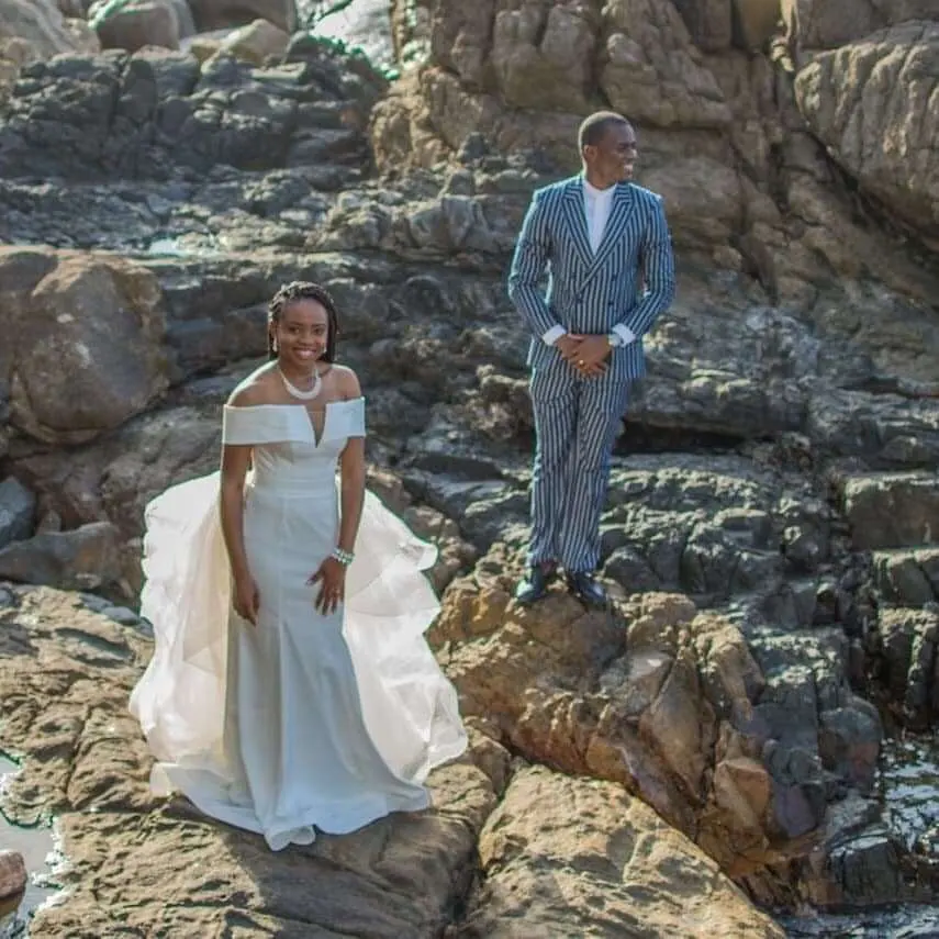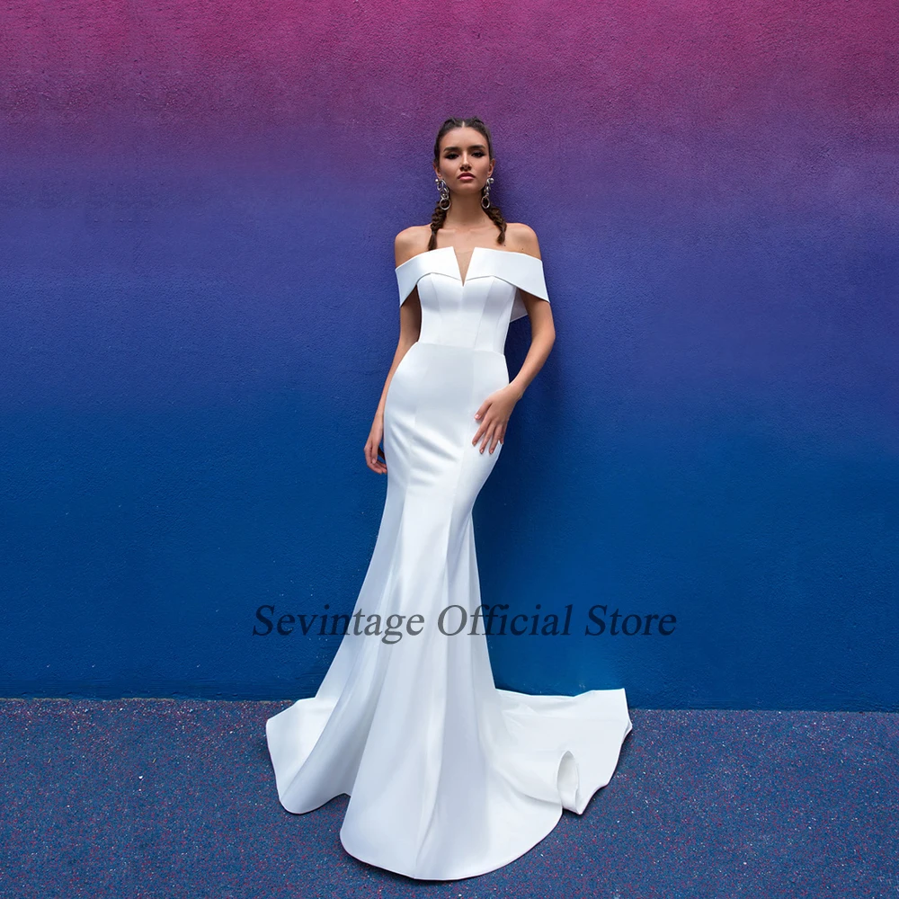 Свадебное платье-Русалка со съемным шлейфом и открытыми плечами