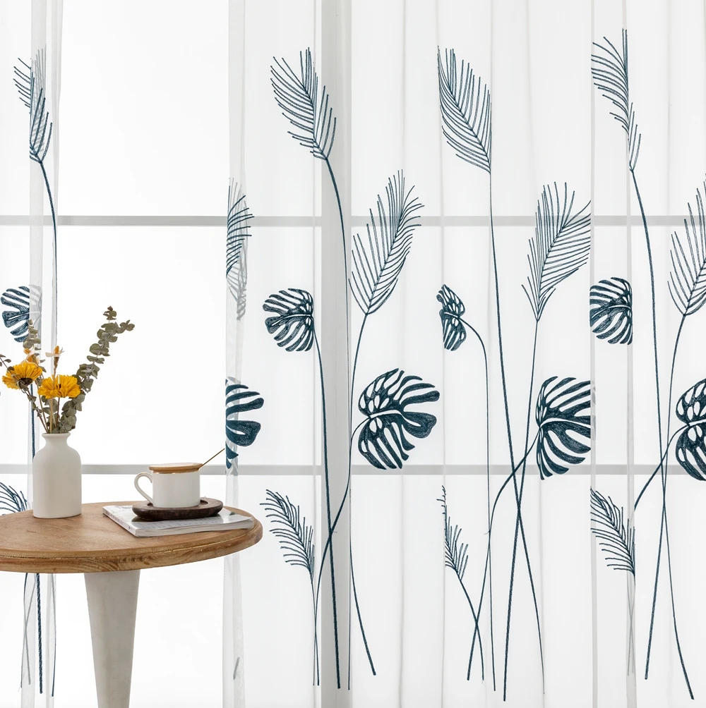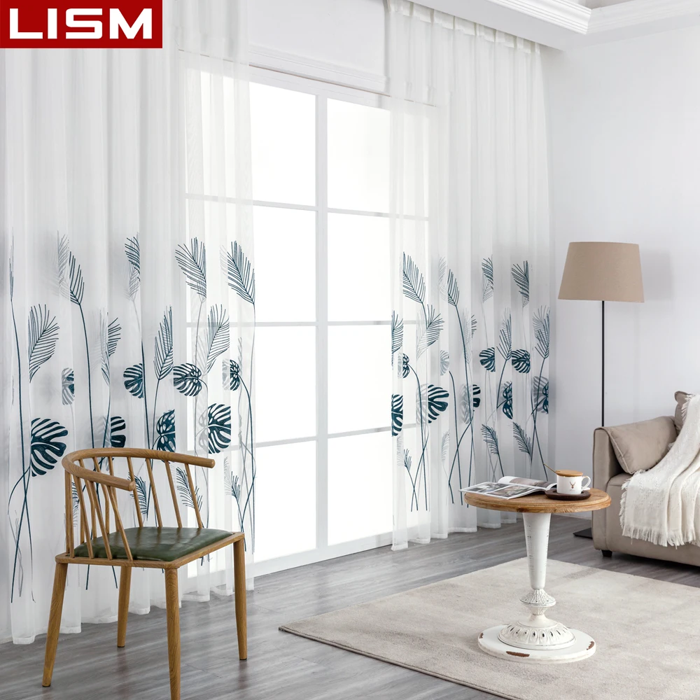 Шторы LISM с вышивкой листьев, прозрачные тюлевые занавески из вуал...