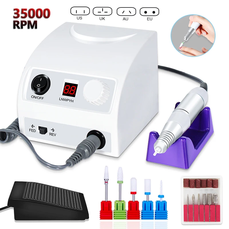 Электрическая машинка для маникюра и педикюра, набор фрез, пилка для ногтей, 35000 обмин20000 ОБмин, оборудование для полировки