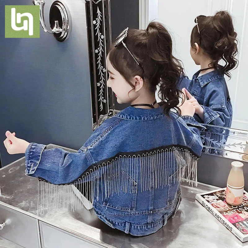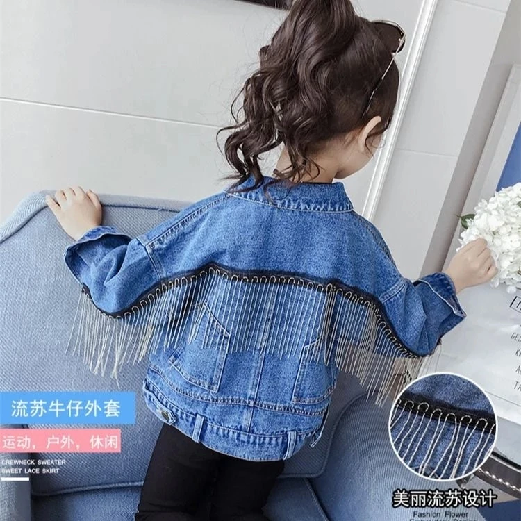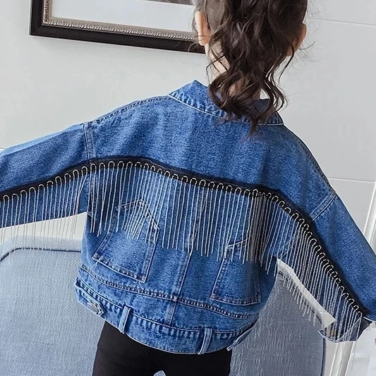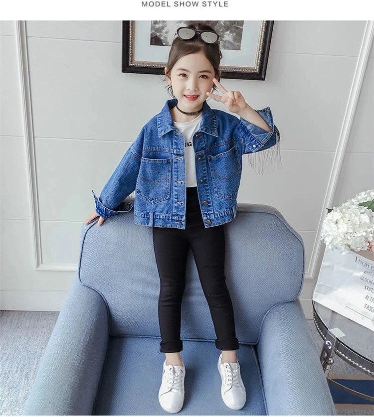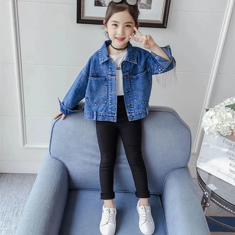 Демисезонная джинсовая куртка для девочек с длинными рукавами и карманами