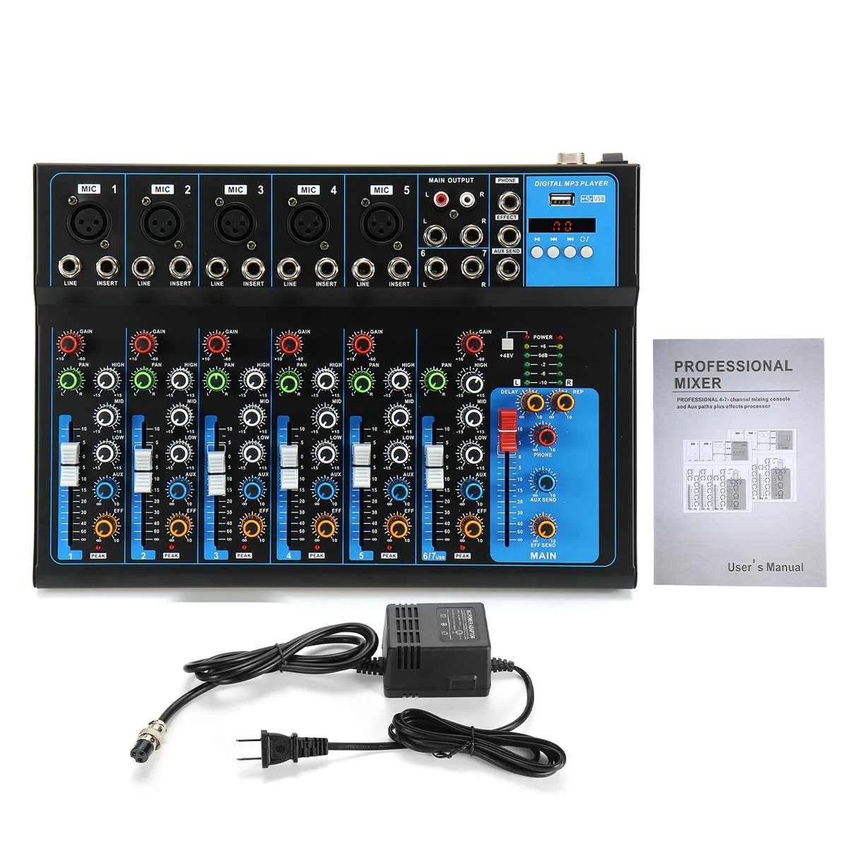 Микшерный пульт для диджея, 7 каналов, USB, с функцией фантомного питания 48 В