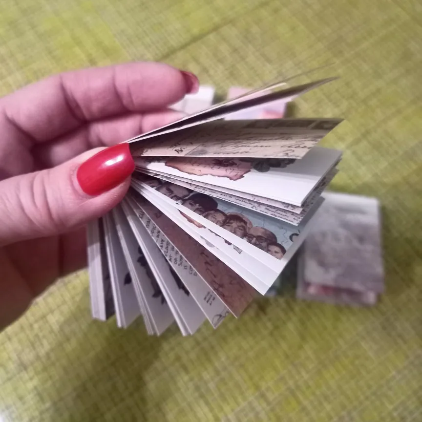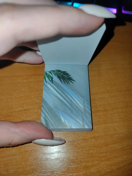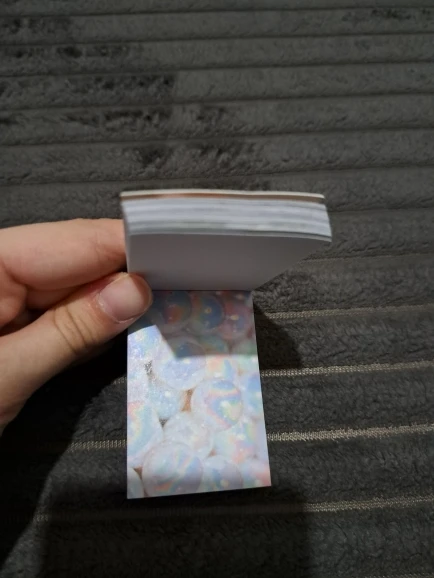 Заказывала все варианты цвета, но отзыв напишу только под одним и дам общую оценку. Наборы понравились. Миниатюрные фотографии напечатаны на немного плотной бумаге (напоминает бумагу для скрапбукинга) в хорошем качестве. Нигде нет смазанных, испорченных, всё красиво. Картинки отрываются легко. Даже из середины или конца. Цветная наклейка сверху снимается без больших усилий, поэтому её и обложку можно использовать в работе. После снятия наклейки листы не рассыпятся, она скорее декоративный элемент.