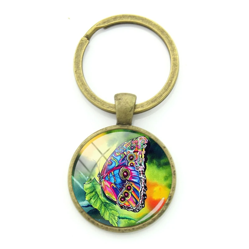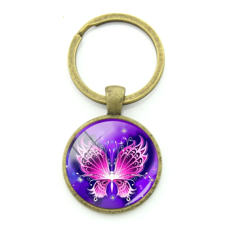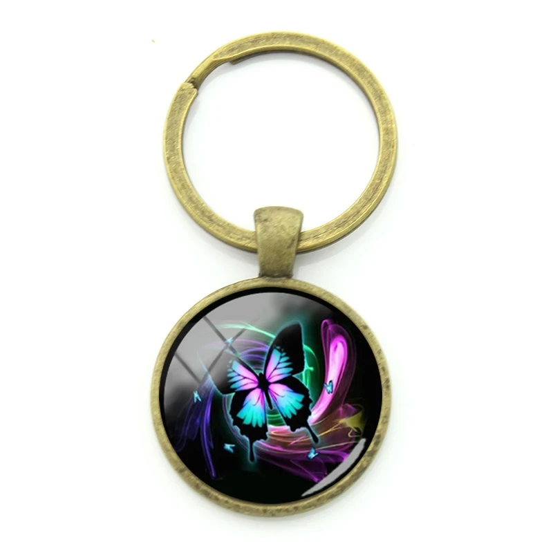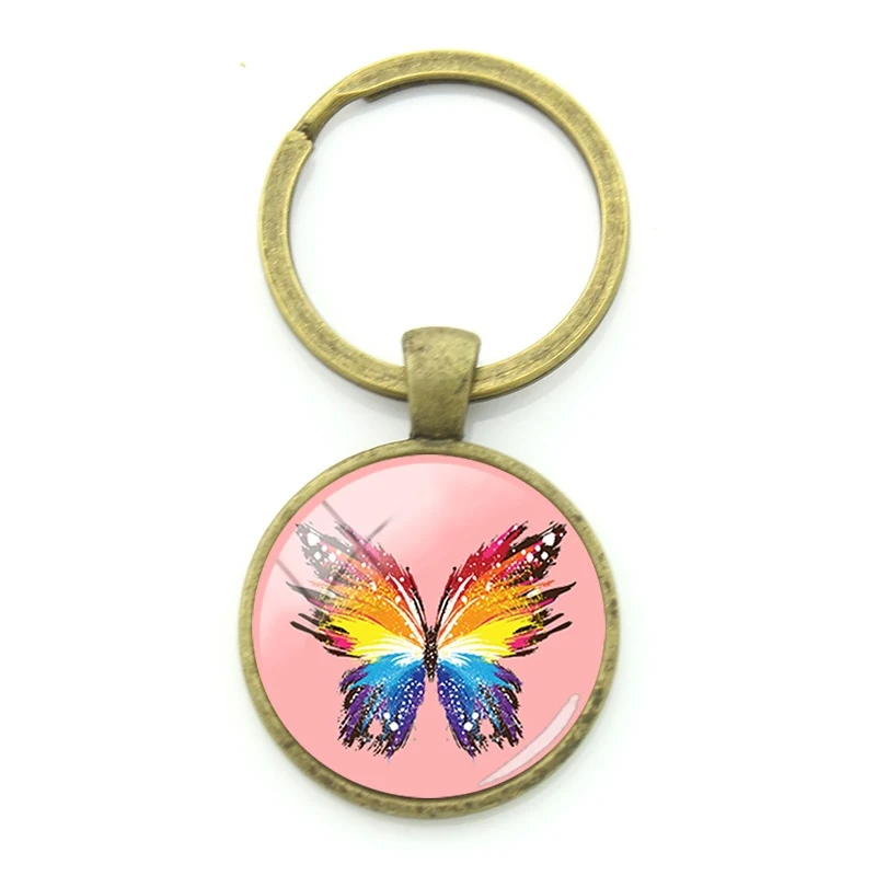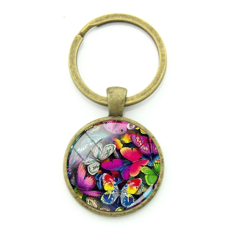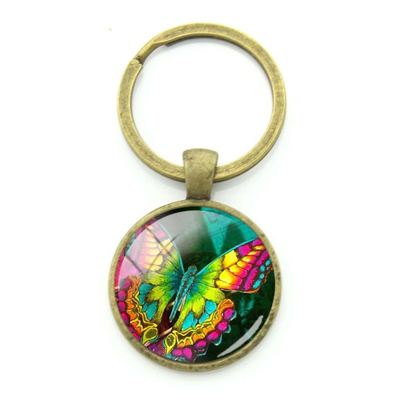 Плотные Брелоки для ключей JWEIJIAO с блестящим рисунком бабочки, бронзовые очаровательные винтажные Брелоки для ключей с насекомыми для женщин, мини-ювелирные изделия