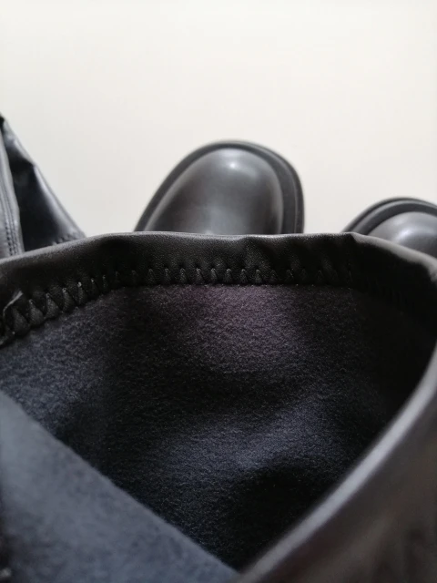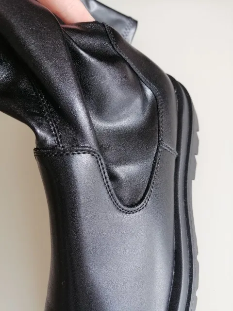 Очень долгая доставка в пункт выдачи. Думаю,это вина именно принимающей стороны. Качество обуви не плохое,соответствует цене. Запах внутри жуткий,надеюсь выветрится. На мои ноги еле прикрывает колено, думаю,на рост не выше 165, иначе будут короткими.