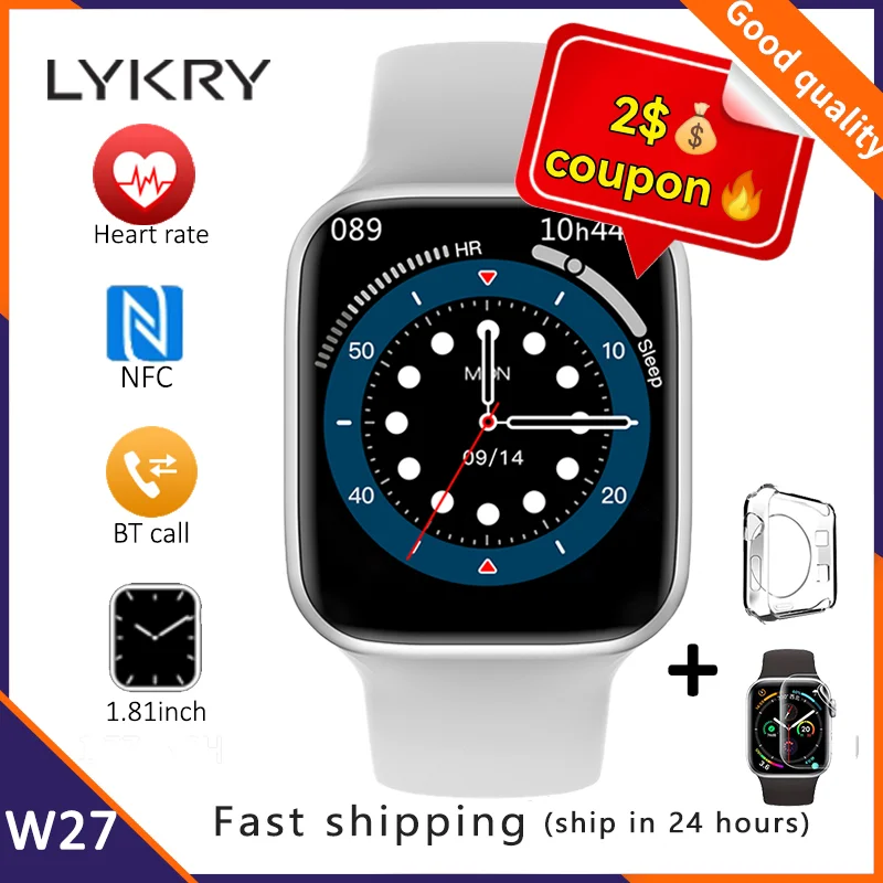 Смарт-часы LYKRY IWO W27, серия 7, 1,81 дюйма, квадратный экран, женские и мужские часы с пульсометром PK W37 HW22 для IOS и Android