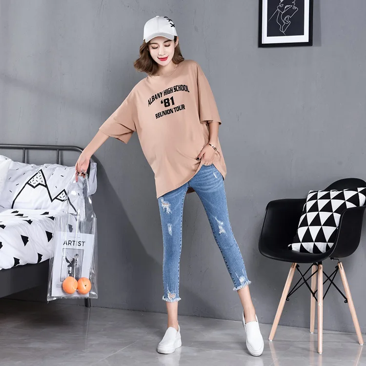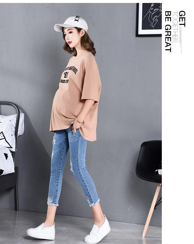 Модные летние весенние джинсы для беременных 710 длинные узкие брюк...