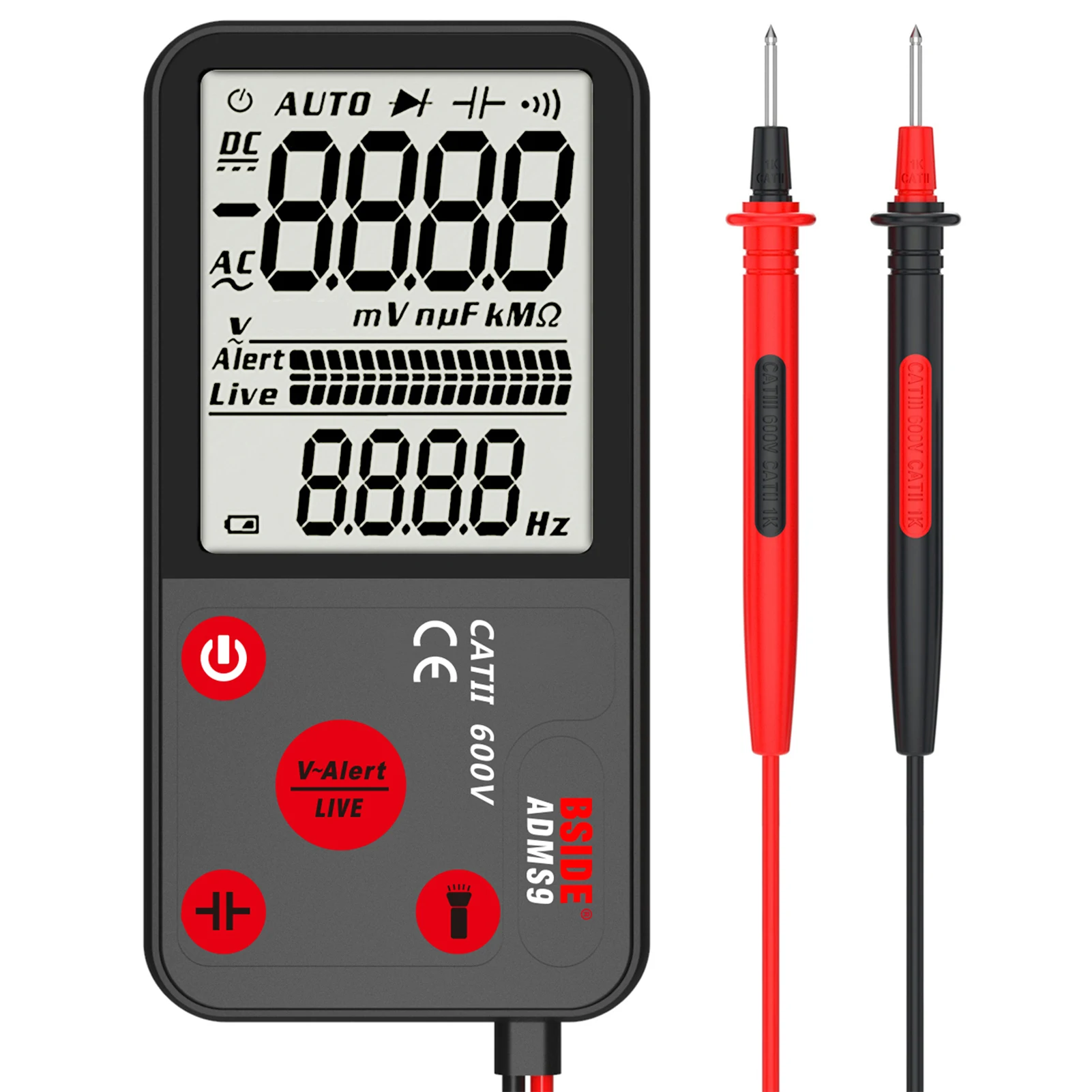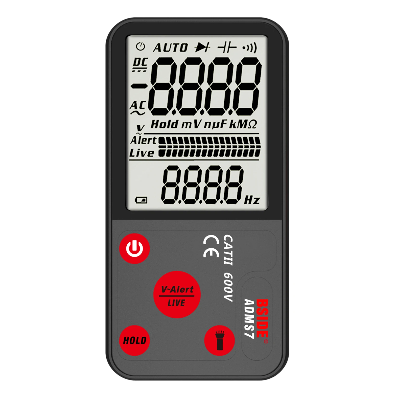 Особенности:Возможность Тестирования прямого тока/напряжения переменного тока, сопротивления, частоты, непрерывности, емкости, диодов и обеспечивает Обнаружение NCV и идентификацию провода в режиме реального времени.Оснащен 3,5-дюймовый большой экран, который показывает 9999 отсчетов четкие показания, легко читаемый.Ультратонкий дизайн, просто размер мобильного телефона, что делает его чрезвычайно портативным и легко носить с собой.Встроенный фонарик позволяет удобно использовать в ночное время или в темном уголке.Практические функции, включая автоматическое измерение диапазона, защиту от перегрузки и автоматическое отключение питания в течение 3 минут, если нет работы.Полезный инструмент для установки домашней цепи, ремонта электроники, обслуживания электрических объектов, ремонта автомобилей, ремонта бытовой техники. Характеристики:Бренд: BSIDEМодель: ADMS7 / ADMS9 (опционально)Материал: АБС-пластикМощность питания: 2 х кнопочная ячейка CR2032 3V (не входит в комплект)