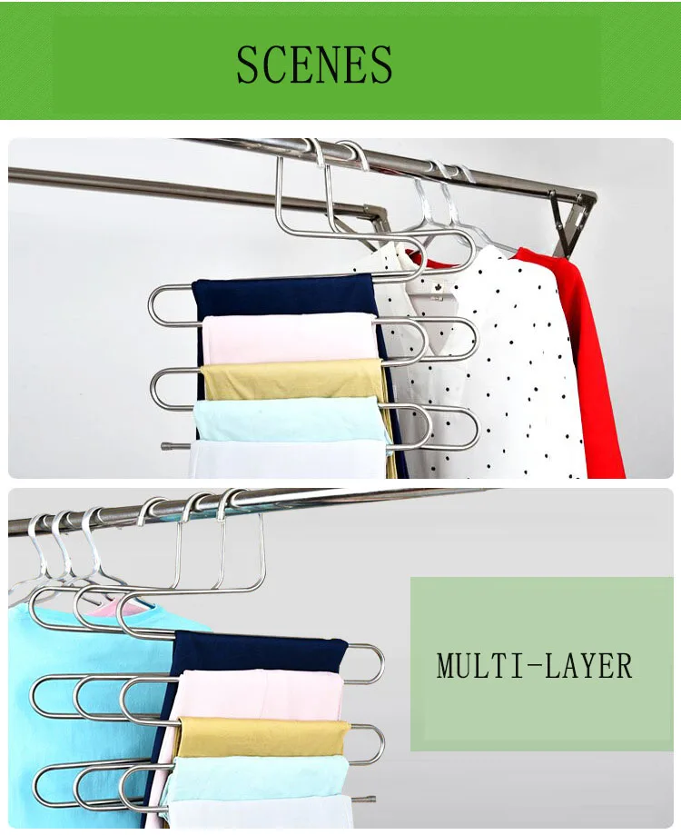 5 слоев вешалки для одежды из нержавеющей стали S форма брюки вешал...