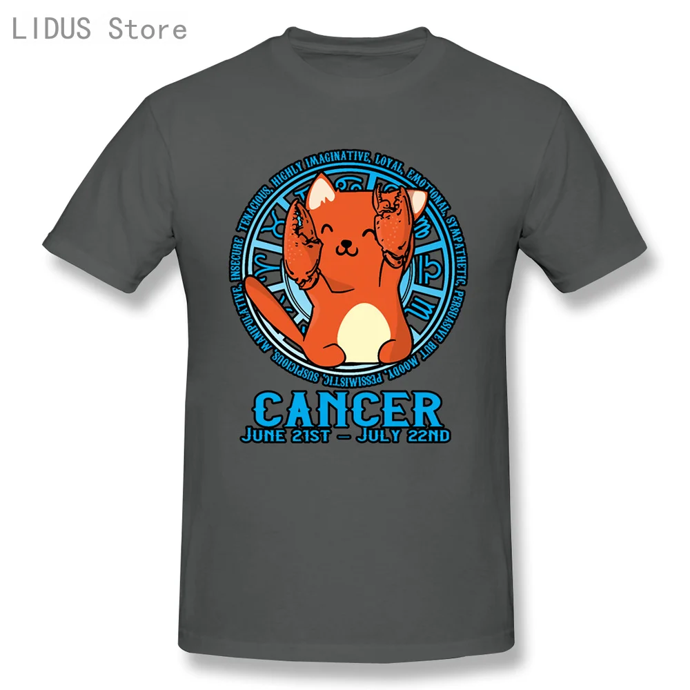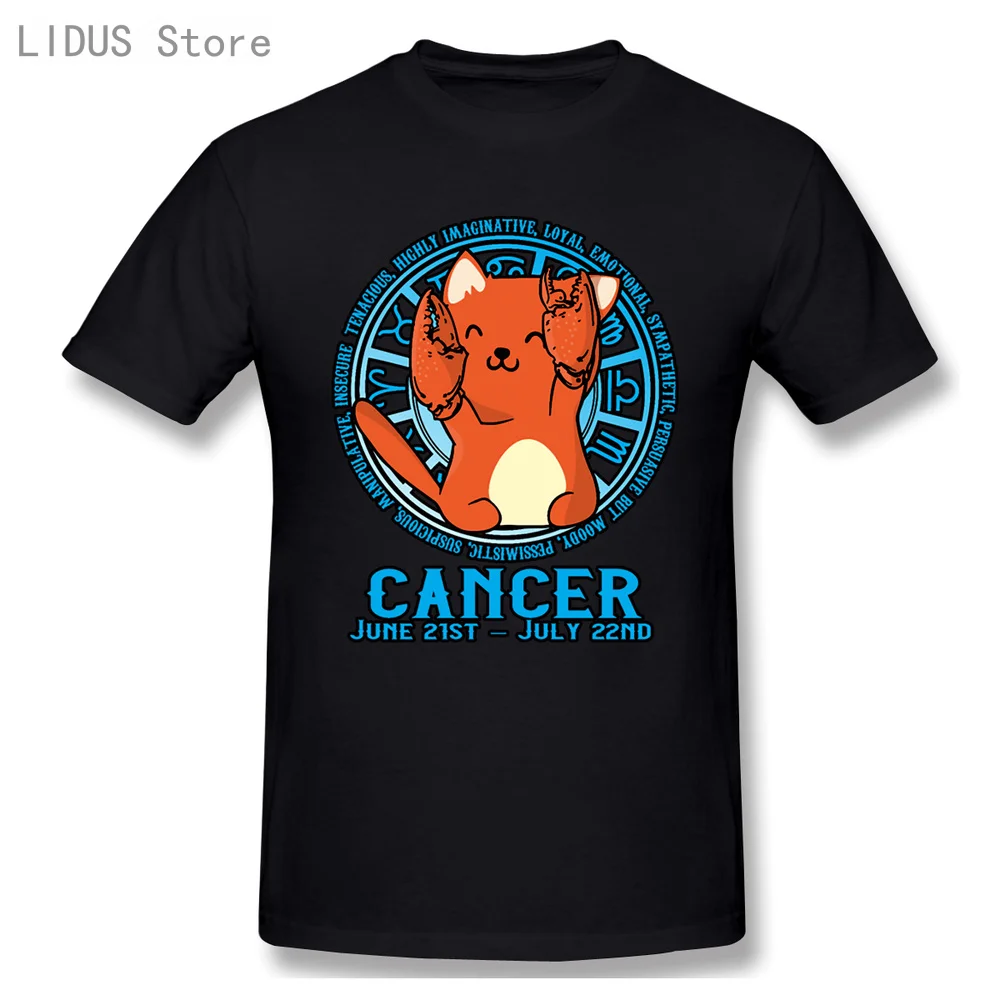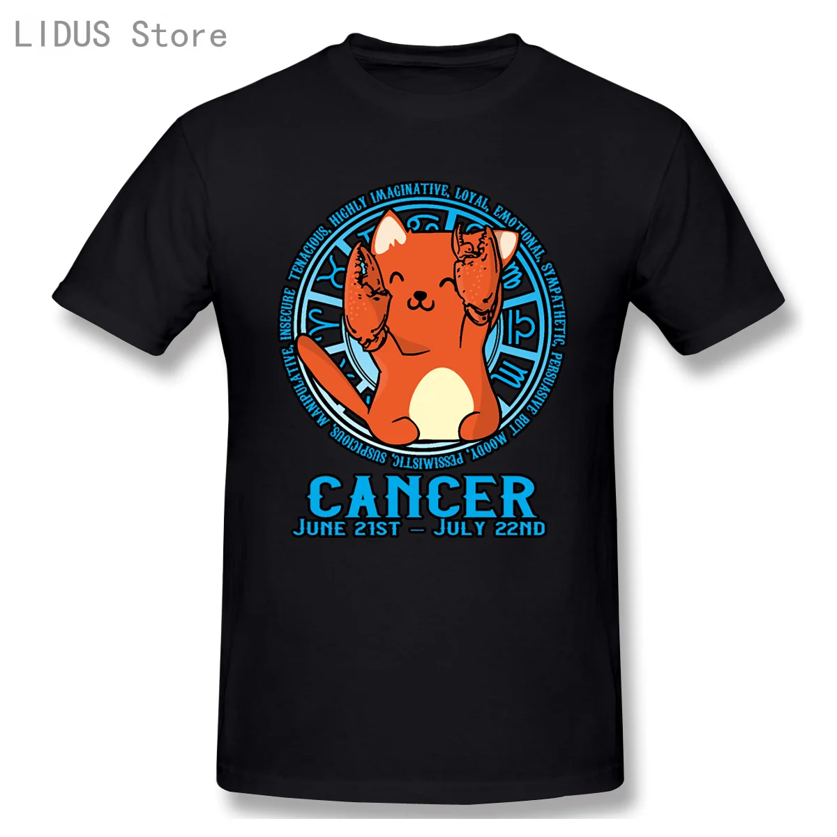 Футболка мужская с знаком зодиака, повседневная черная короткая рубашка с принтом рак, звезды, зодиака, кота, любви