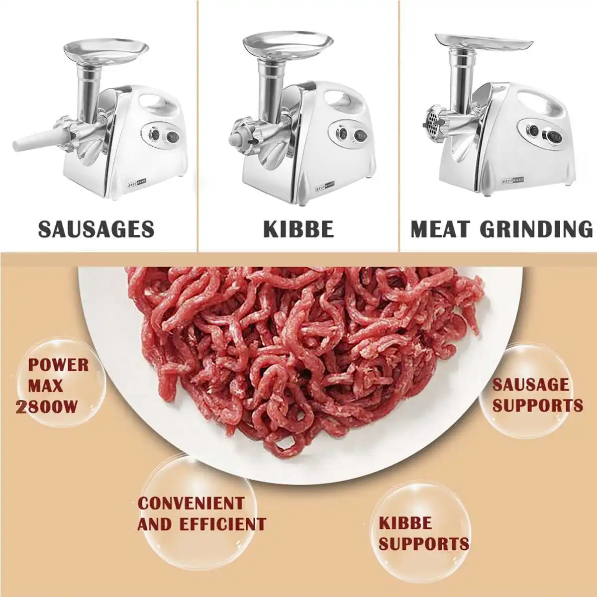 Характеристики:Вилка: штепсельная вилка США, штепсельная вилка европейского стандарта (опция)Цвет: белый, красныйМатериал: нержавеющая сталь + ABSНоминальная мощность: 2800 ВтНапряжение: 110 В/220 ВФункция: киббе, колбаса, мясорубка