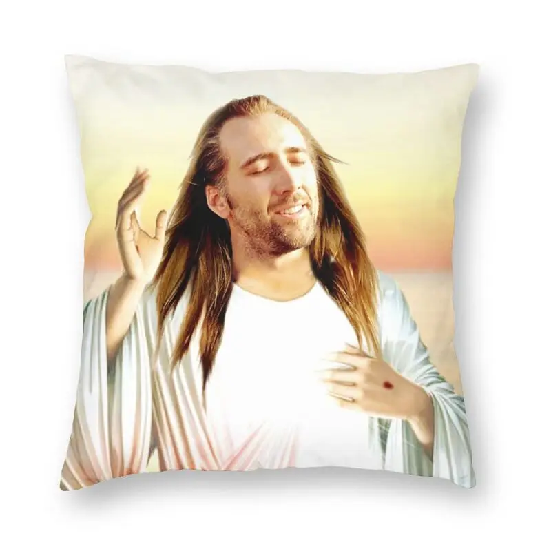 Квадратная наволочка для подушки Николаса Кейджа, домашний декор, наволочка для подушки с Иисусом и мемом, наволочка для дивана, двусторонняя печать