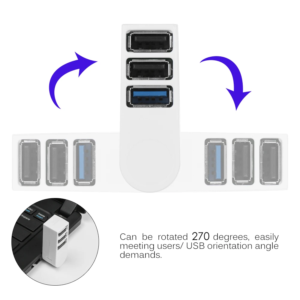 Адаптер USB usb-хаб, 3,0, вращающийся, высокоскоростной, для считывания дисков, разветвитель, 3 порта USB 2,0 для компьютера, ПК, ноутбука, Mac, мини-Аксессуары