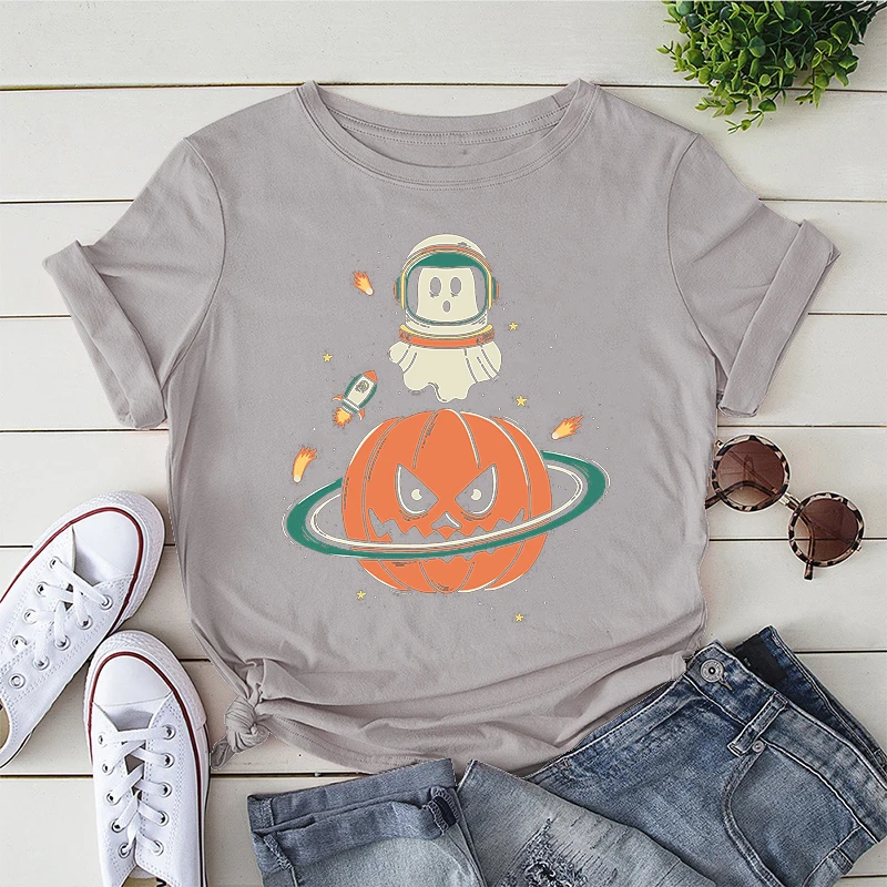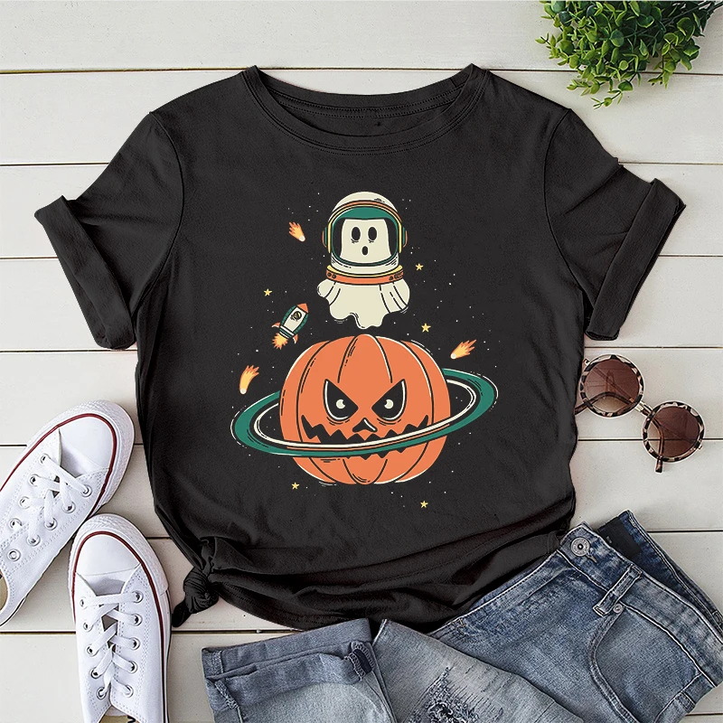 Женская футболка с изображением тыквы планеты Хэллоуин 2021 летний модный Классический Топ повседневные подходящие ко всему футболки с коротким рукавом Y2k эстетические Графические футболки