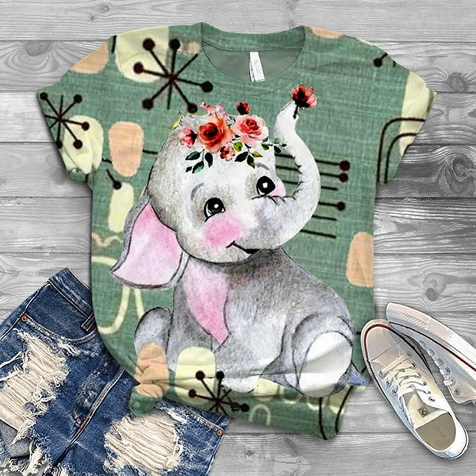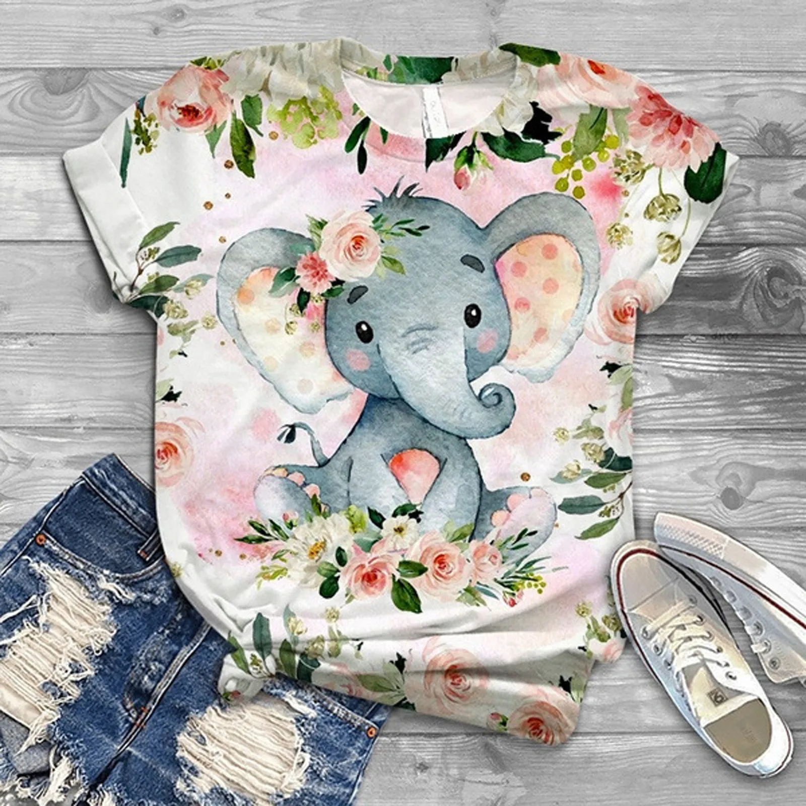 Женская футболка с принтом слона, летний топ с коротким рукавом в стиле Харадзюку, женский свитер с принтом, Прямая поставка