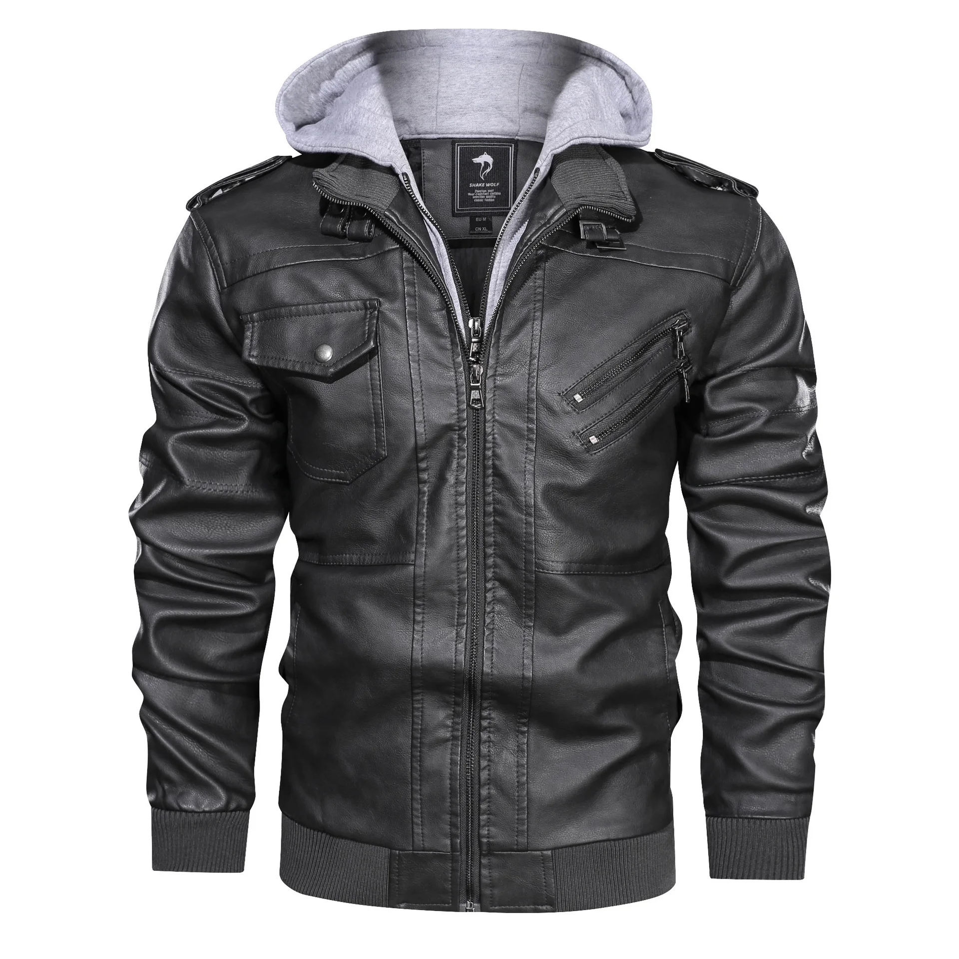 Мужская Осенняя кожаная куртка с капюшоном, мотоциклетная куртка из...