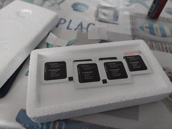 Доставка в идеальном состоянии, очень хорошо упакована. 4 листа приходят, соответствующие подгузники и жидкость, которая должна быть помещена в края, и метки воздуха уходят (не забудьте войти в сеть qr, которая приносит пакет) Я рекомендую 100%