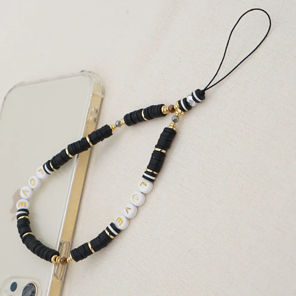 Брелок для ключей, мягкий керамический ремешок черного и белого цвета с бусинами цепочки на телефон для пары, чехол для мобильных телефонов, подвесной шнур