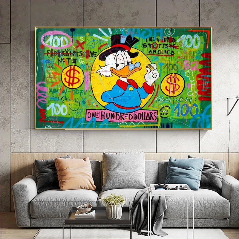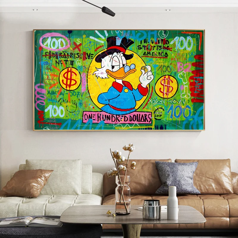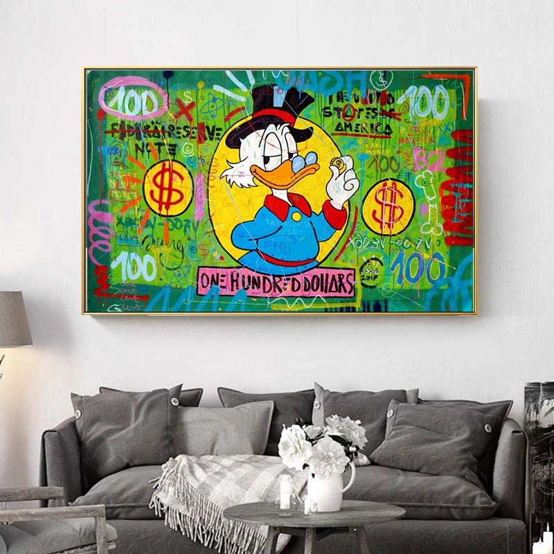 Disney граффити искусство аниме постеры и искусство стены Дональд Дак сто долларов картина для декора детской комнаты