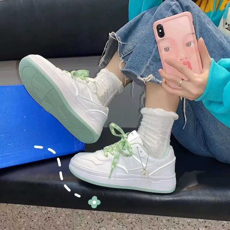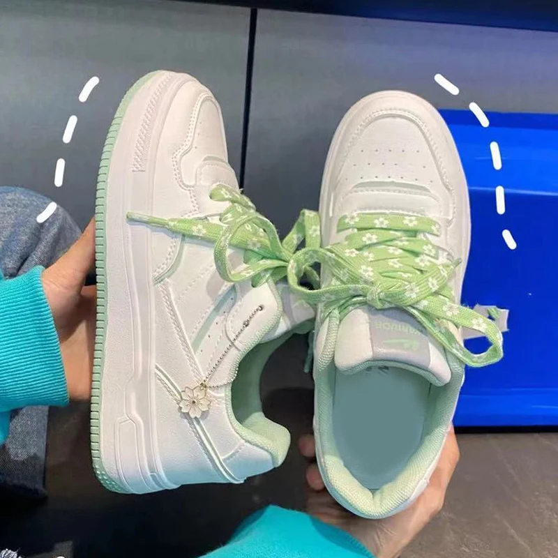 Женские кроссовки на вулканизированной подошве, зеленые Повседневные Удобные кроссовки с цветочным украшением, осень 2021