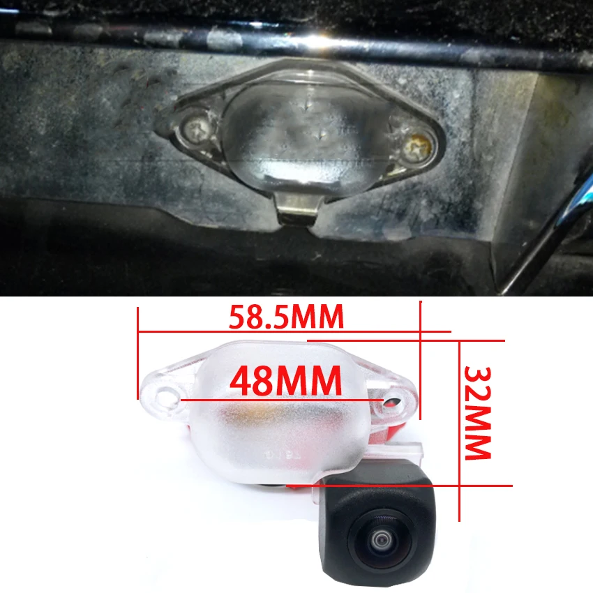 Перед заказом, пожалуйста, убедитесь, что фото размера камеры одинаковое, расположение лампы номерного знака и желтый разъем RCA, чтобы проверить размер камеры вместе, чтобы избежать ошибок. (Если вы не уверены, пожалуйста, оставьте сообщение для сотрудников службы поддержки клиентов: Отправьте модель автомобиля и год + информацию о фото позиции лампы номерного знака)